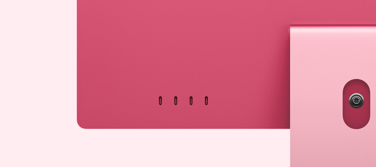 Magical. Connections: Powerful ports. More possibilities. iMac now features up to four Thunderbolt 4 ports — expanding your accessory options and enabling lightning-fast data transfers. And you can connect up to two external 6K displays for a vast canvas to view your work.[7]