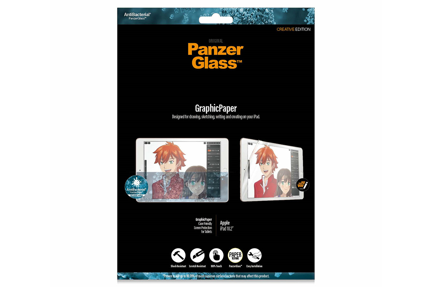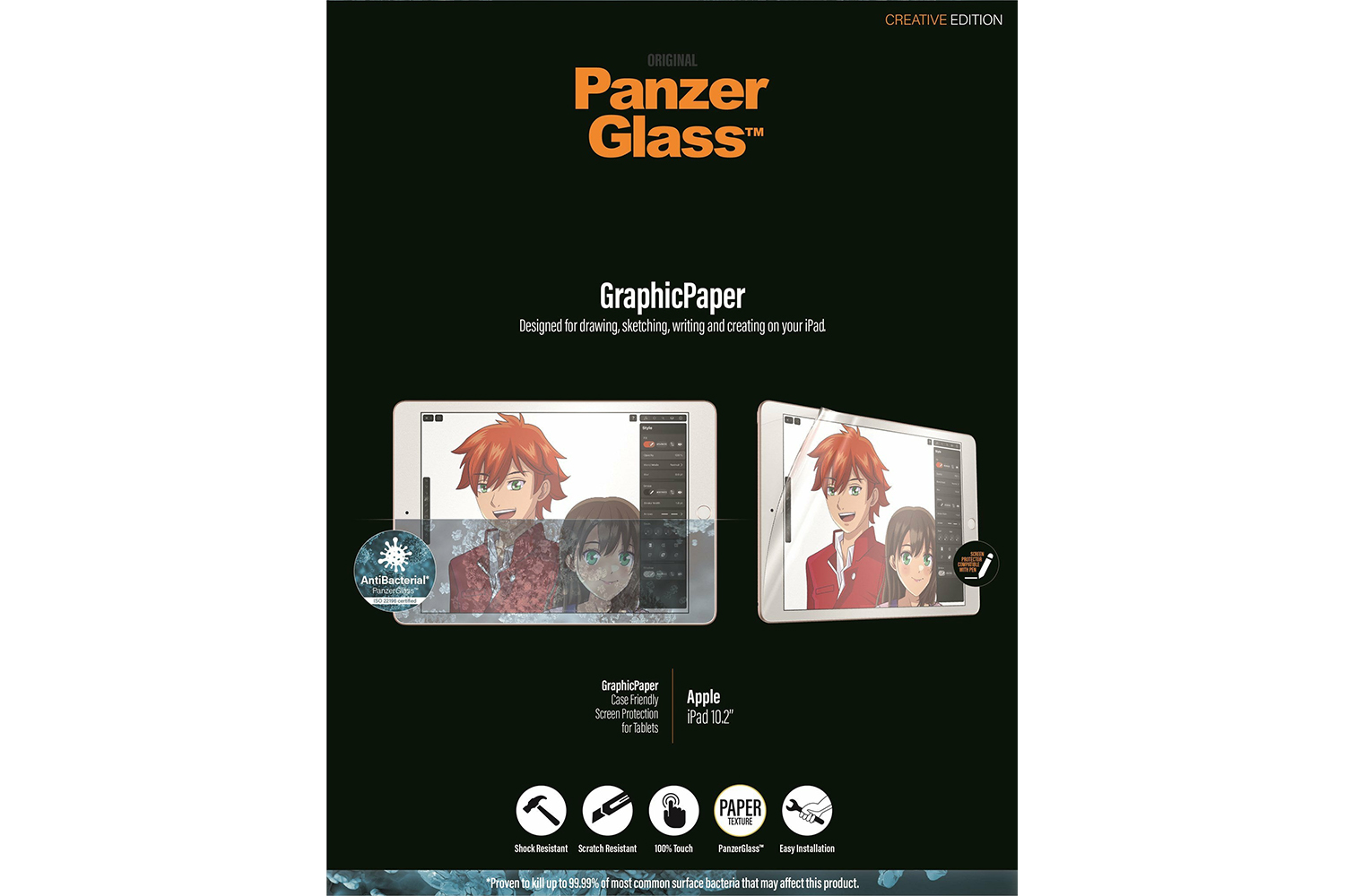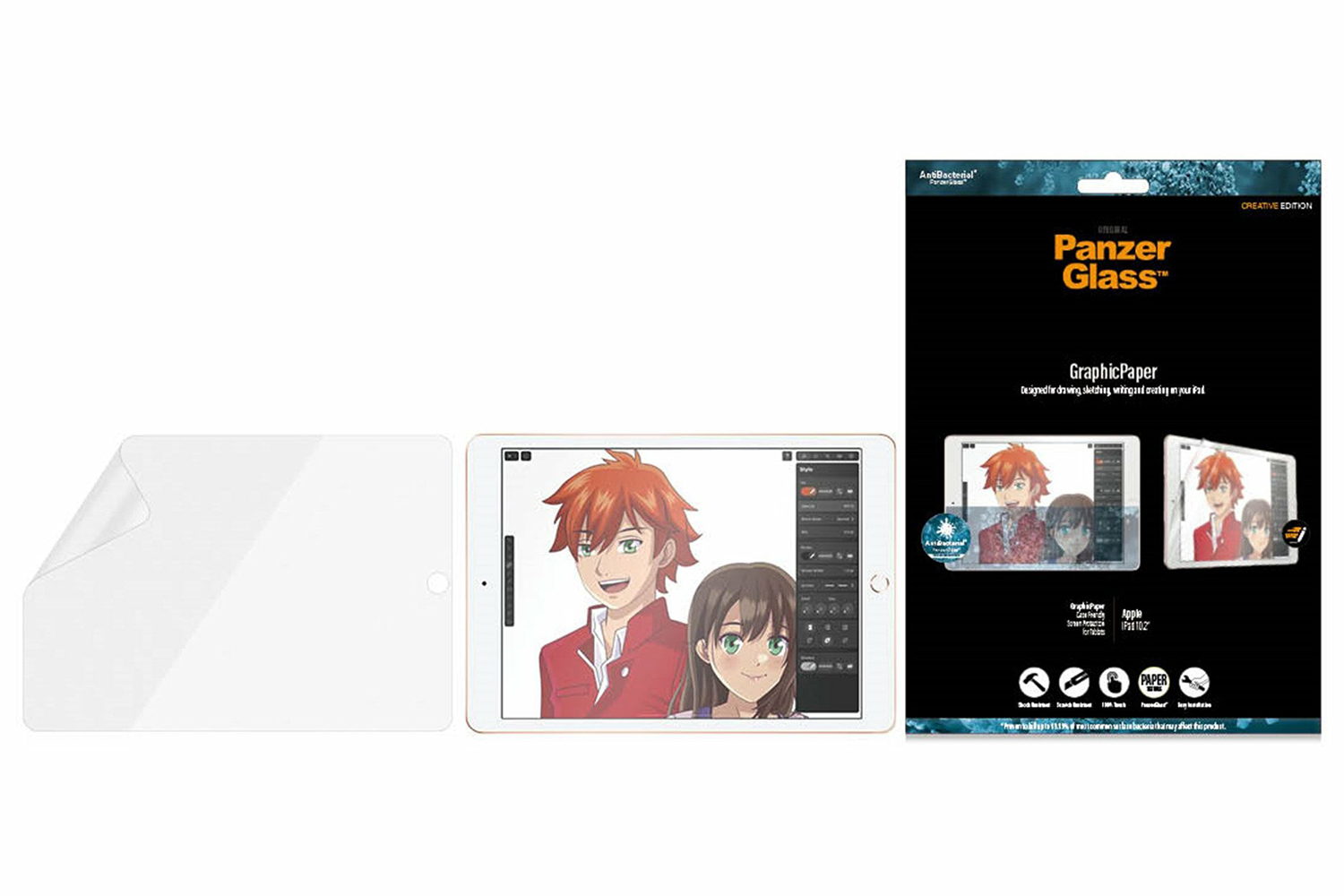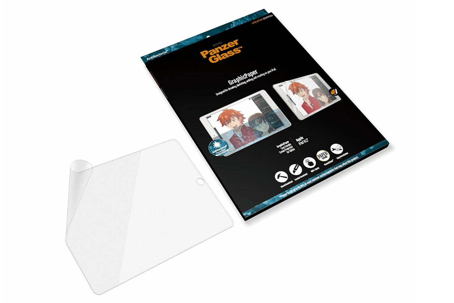 This award-winning GraphicPaper screen protector is designed to recreate the texture of paper as well as protect your iPad from the hazards of everyday life. Tested by creatives of all ages and levels, it is ideal for creative work, school work, note taking, sketching, drawing or just playing games. The screen protector is scratch and shock-resistant and even has a smudge-free coating with antibacterial effect that reduces traces of fingerprints and kills up to 99.99% of all common surface bacteria.