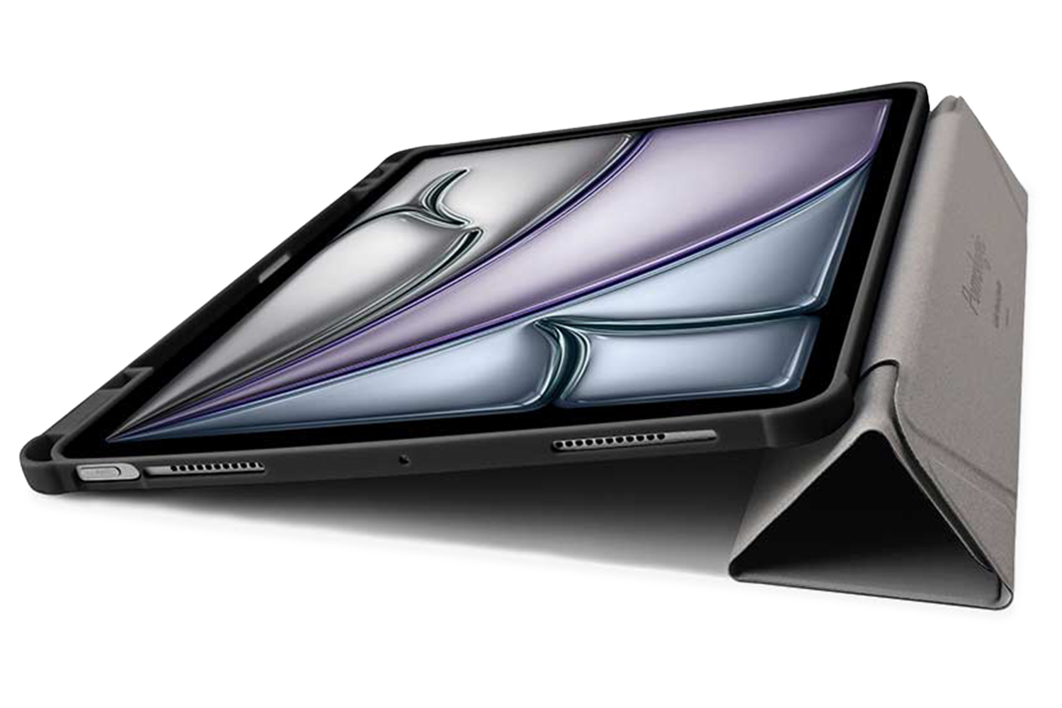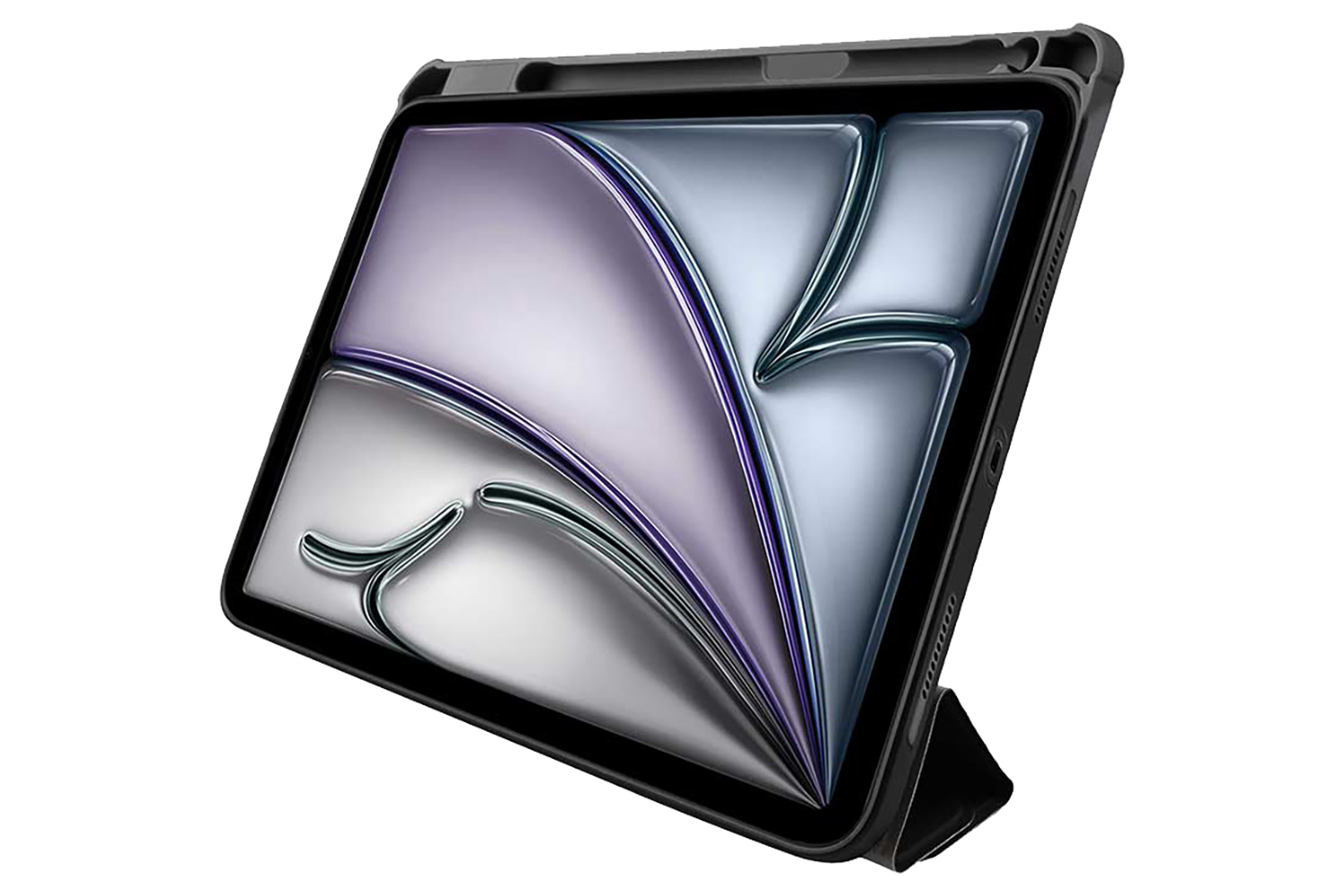 Experience new ways to fold. OrigamiCase Clear + Pencil for iPad Air 11-inch has an origami-inspired front cover that can be folded in multiple angles. The sturdy yet slim transparent scratch-resistant back has an integrated pencil holder and colorful edges surrounding your iPad without covering its design.