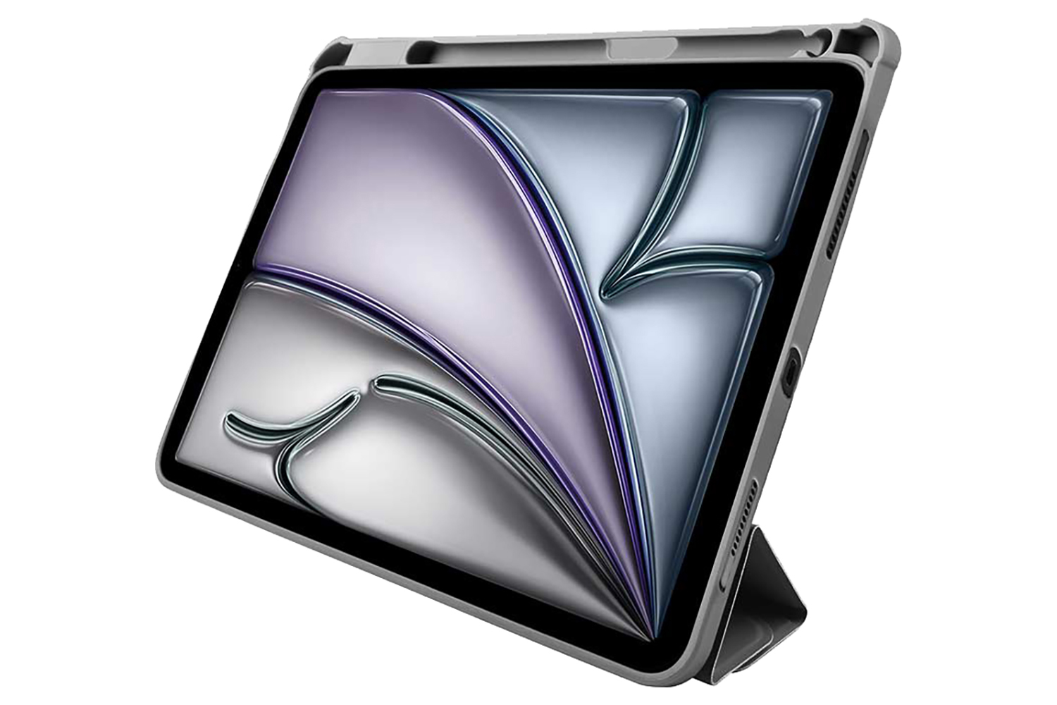 Experience new ways to fold. OrigamiCase Clear + Pencil for iPad Air 11-inch has an origami-inspired front cover that can be folded in multiple angles. The sturdy yet slim transparent scratch-resistant back has an integrated pencil holder and colorful edges surrounding your iPad without covering its design.