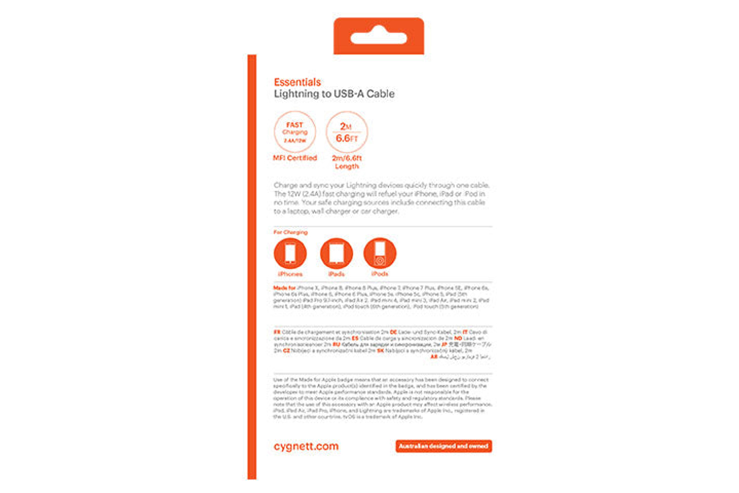 Cygnett Essentials Lightning to USB-A Cable | 2m | Black