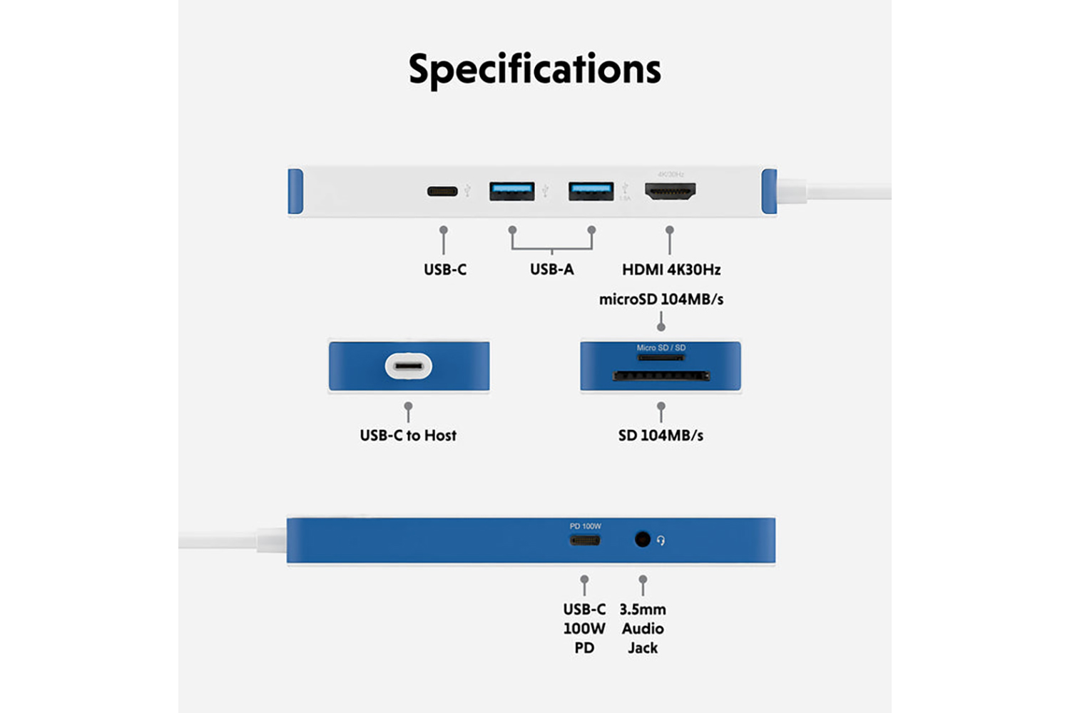 Transfer large files and photos in seconds with the built-in SD and microSD 104MB/s reader. Whether you're moving high-res images or project files, these card readers keep your creative flow uninterrupted.