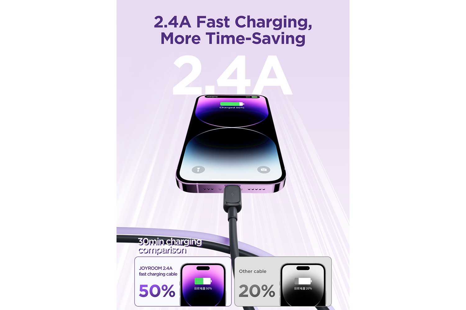 • 2.4A fast charging, fully charge your device in less time