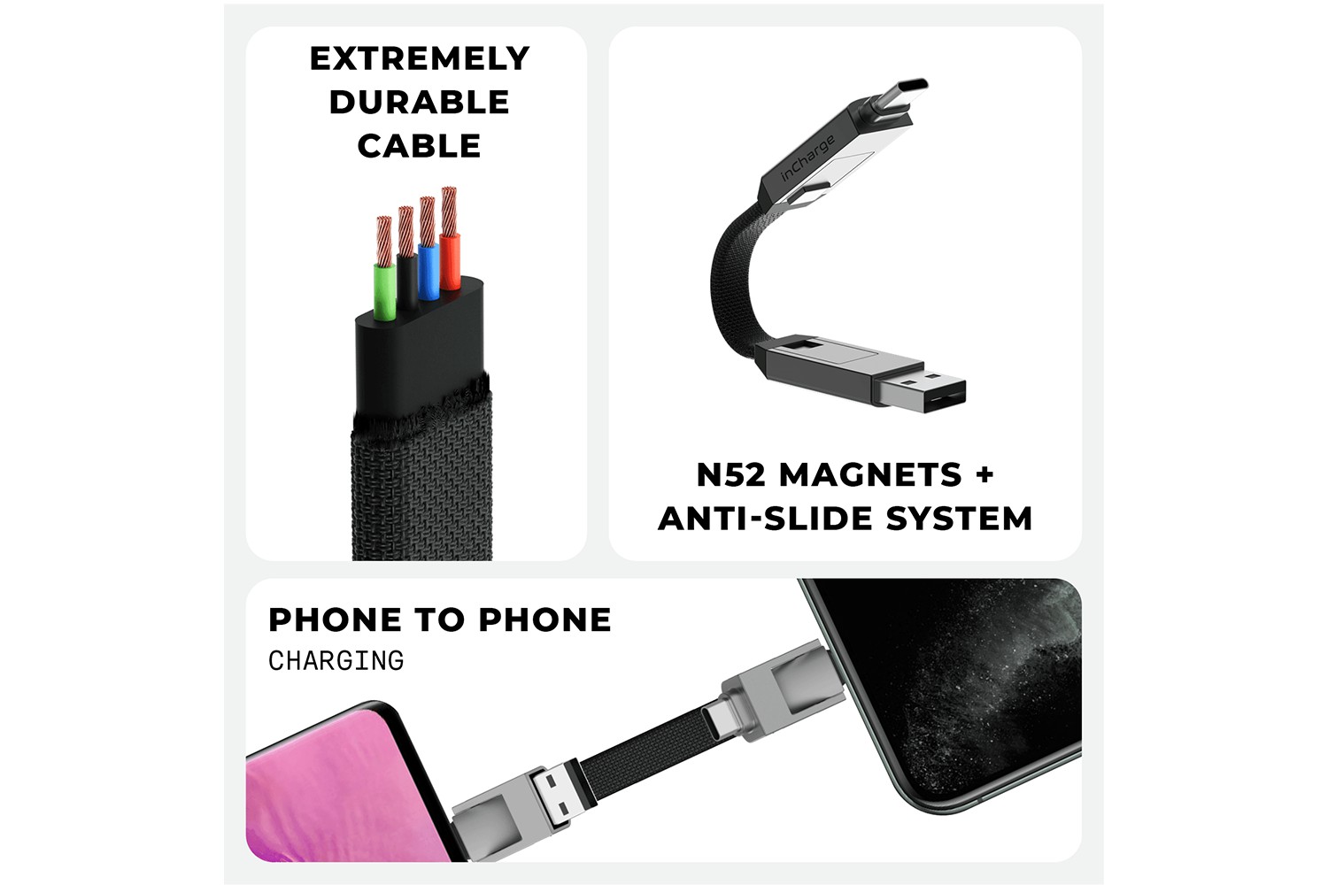 InCharge 6 comes with N52 magnets, the highest grade achievable, and our proprietary Anti-slide system, so that you'll never lose it from your keys.