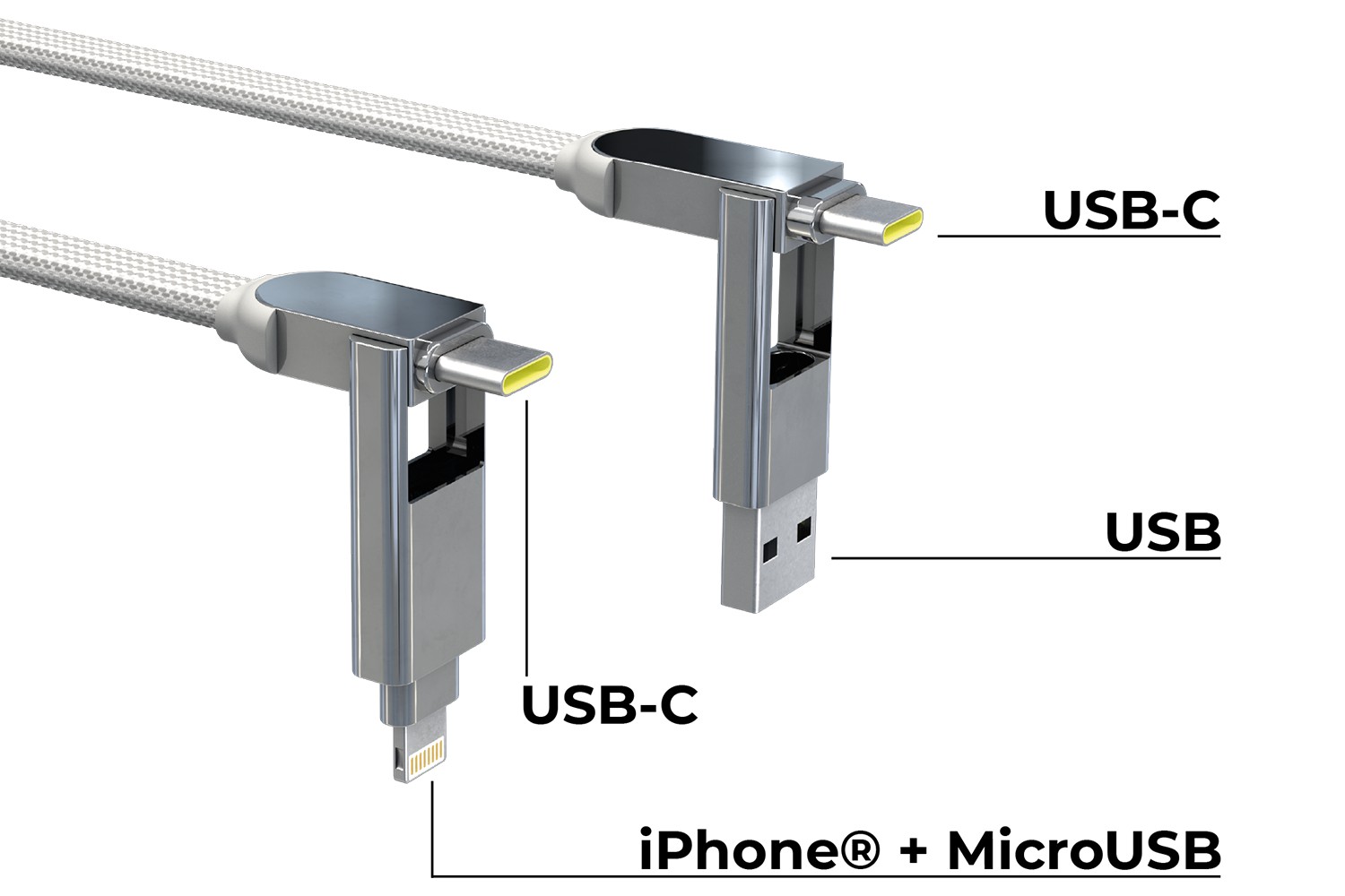 inCharge XL has 6 different charging combinations that can virtually charge any device from any power source. It allows data transfer and ultra fast charging up to 100W and Apple's Fast Charging up to 27W.
