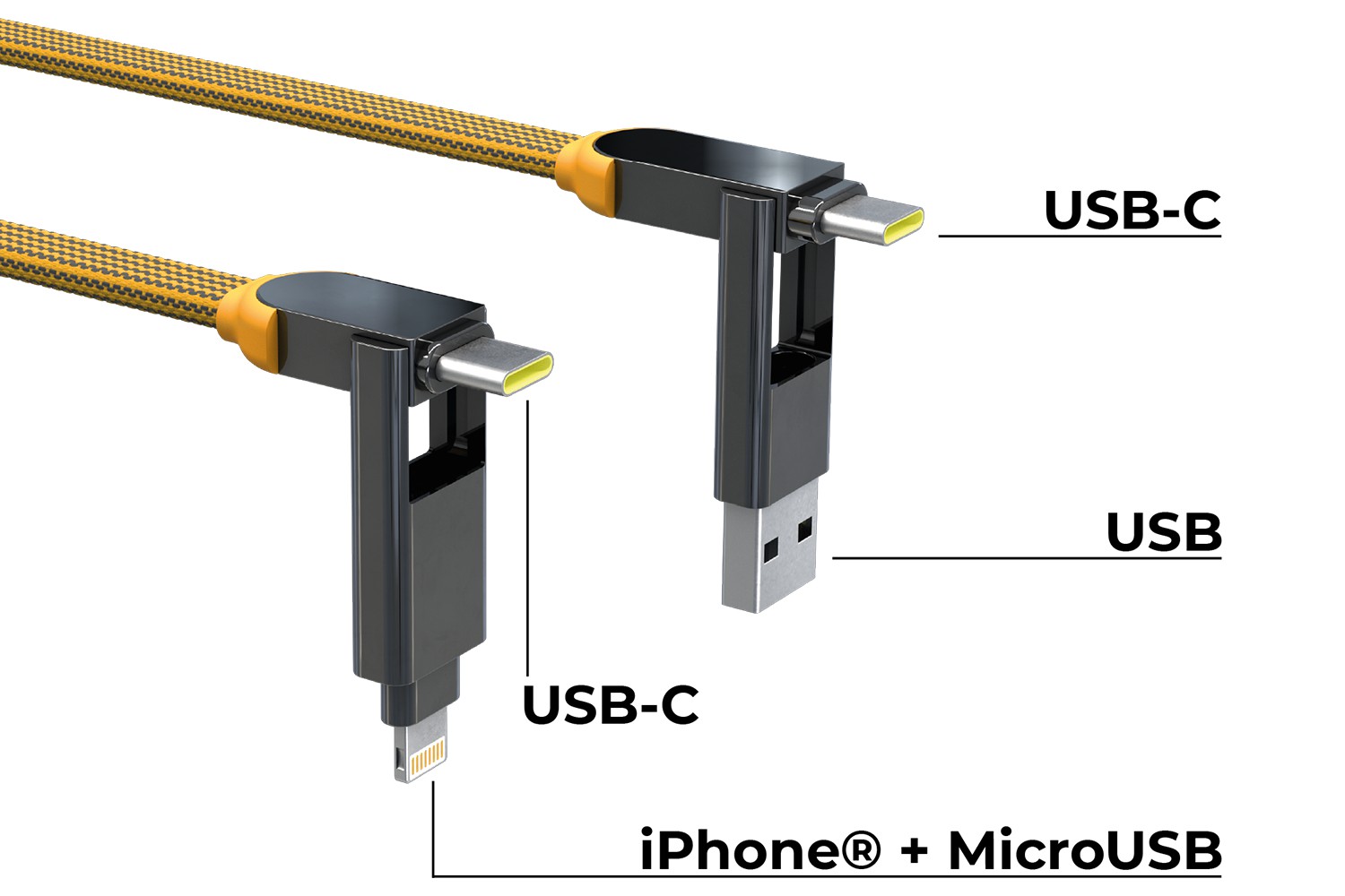 inCharge XL has 6 different charging combinations that can virtually charge any device from any power source. It allows data transfer and ultra fast charging up to 100W and Apple's Fast Charging up to 27W.