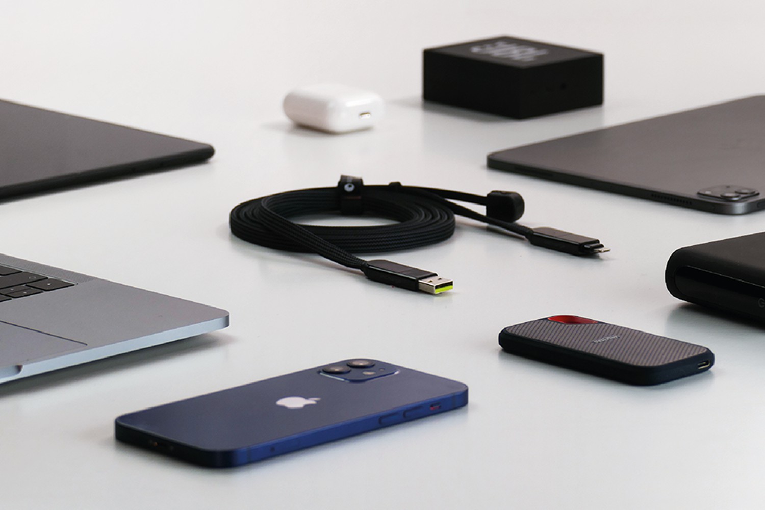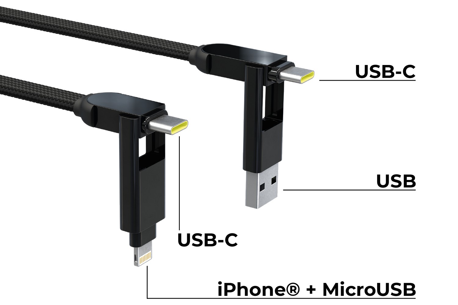 inCharge XL has 6 different charging combinations that can virtually charge any device from any power source. It allows data transfer and ultra fast charging up to 100W and Apple's Fast Charging up to 27W.