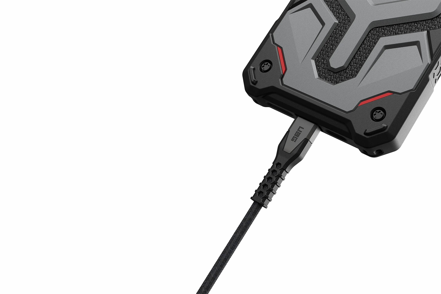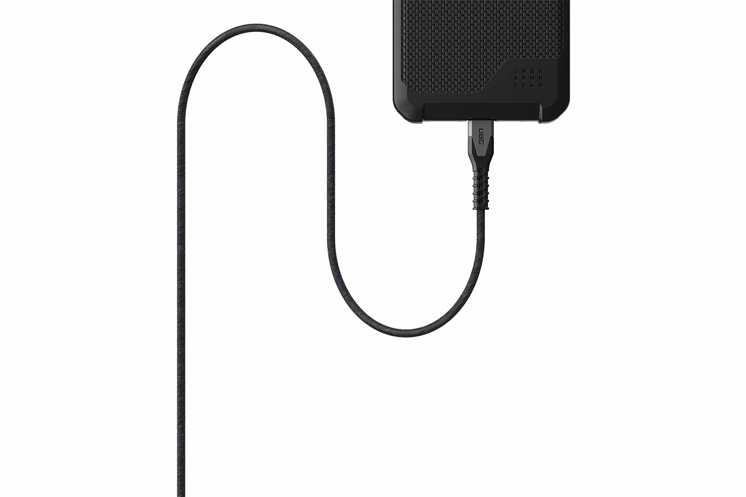Built to outlast the competition, UAG USB-C cable is engineered to withstand heavy everyday wear and tear. We tested UAG cable to withstand over 50,000 bends for real-world resilience. Featuring multi-directional Hex Matrix strain relief that offers advanced protection from repeated bends, fatigue loading, and failure. The reinforced Kevlar core and double-braided nylon exterior provides strength and durability. UAG cable supports safe and reliable fast charging up to 60 watts so you can quickly and efficiently charge your device. Don't settle for ordinary cables that fray and fail – choose the cable that's engineered to endure.