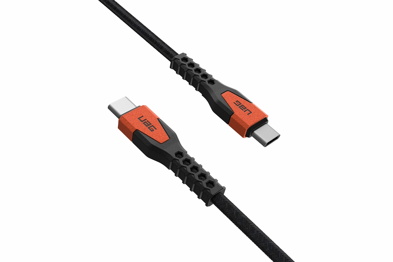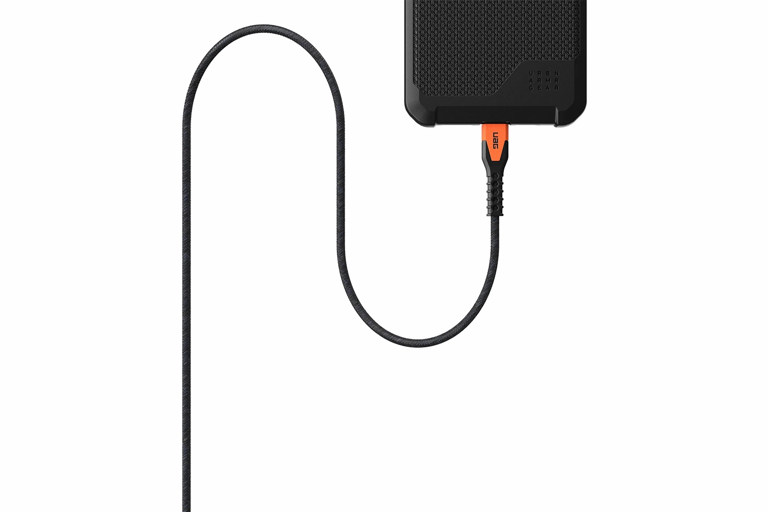 Built to outlast the competition, UAG USB-C cable is engineered to withstand heavy everyday wear and tear. We tested UAG cable to withstand over 50,000 bends for real-world resilience. Featuring multi-directional Hex Matrix strain relief that offers advanced protection from repeated bends, fatigue loading, and failure. The reinforced Kevlar core and double-braided nylon exterior provides strength and durability. UAG cable supports safe and reliable fast charging up to 60 watts so you can quickly and efficiently charge your device. Don't settle for ordinary cables that fray and fail – choose the cable that's engineered to endure.