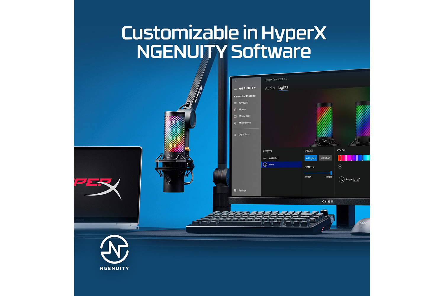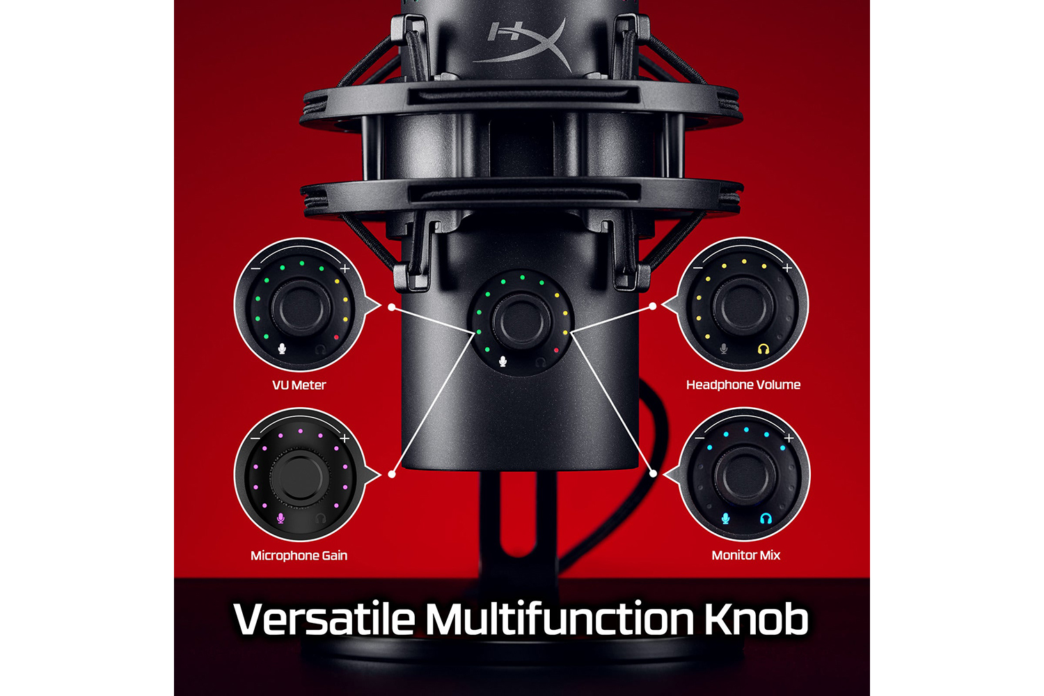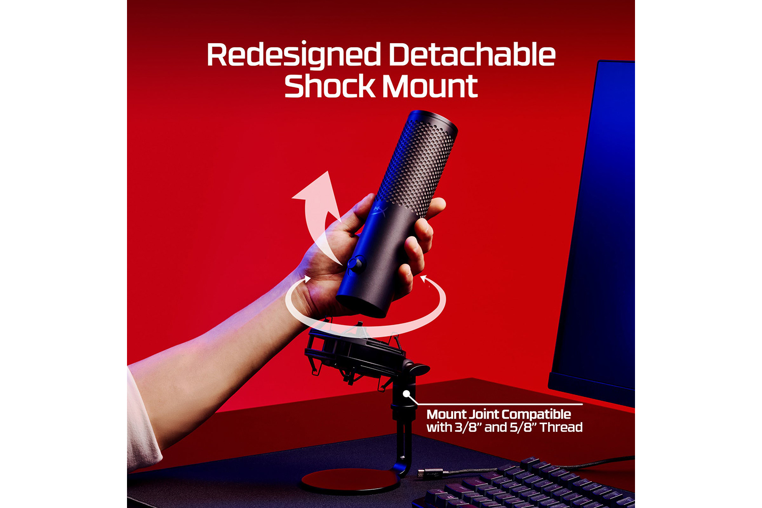 HyperX QuadCast 2 S is a full-featured microphone designed with creators in mind. In addition to iconic features of HyperX QuadCast line, like the tap-to-mute sensor, four selectable polar patterns, and included shock mount/stand, HyperX enhanced the QuadCast 2 S with improved functionalities to elevate HyperX users’ experience. The 32-bit/192kHz advanced audio capability, enables the mic to deliver unmatched clarity and precision while maintaining exceptional audio fidelity. The QuadCast 2 S is the world's most customizable USB Gaming Microphone, with over 100 aRGB LEDs [1]. The aRGB LEDs enable users to customize a stunning visual that blends sound fidelity with an energetic style. HyperX also enhanced the QuadCast 2 S to effectively address the various challenges highlighted by HyperX community. Users are now able to quickly adjust microphone and headphone levels, like mic gain and monitor mix with a single, multifunction knob. HyperX also redesigned HyperX shock mount with an innovative, spring-loaded pin system to easily mount onto a mic arm. HyperX listened and HyperX delivered a microphone that is truly customized for HyperX community.