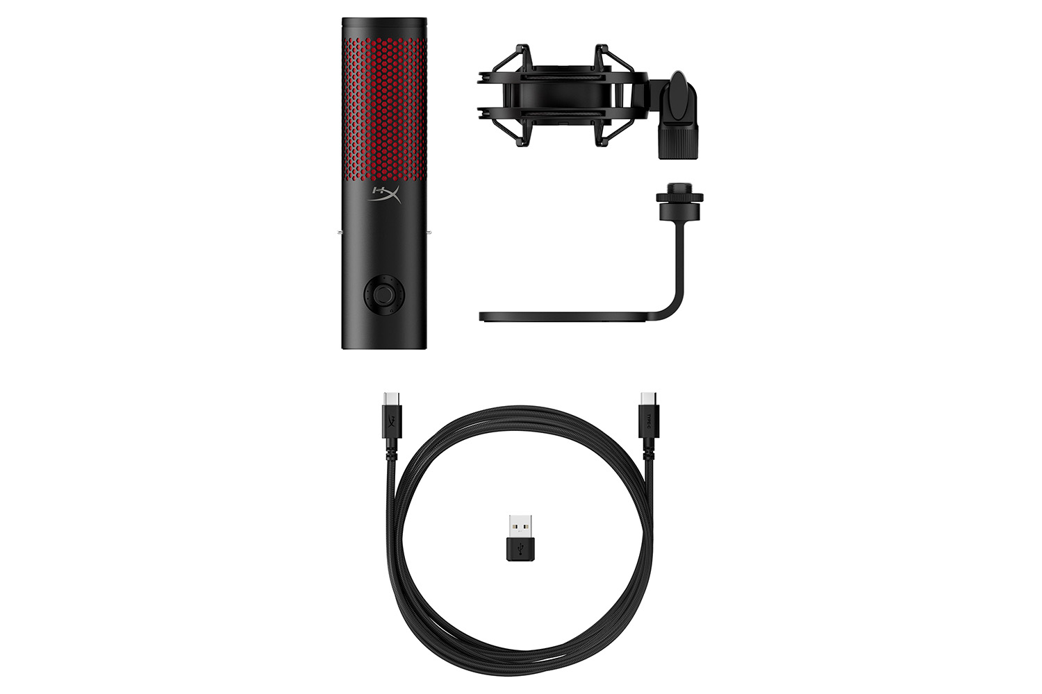 The HyperX QuadCast 2 refines everything that made the original such a favorite amongst gamers, streamers, and content creators around the world. All the fan-favorite features are still here: the iconic stunning lighting, the tap-to-mute sensor, 4 selectable polar patterns, 3.5mm headphone jack and included shock mount and desktop stand but now with a range of innovative additions and packaged in a new sleek, full aluminum silhouette. QuadCast 2 features upgraded 24-bit, 96kHz recording for a studio-quality recording experience. It also features a redesigned detachable shock mount with improved performance and innovative spring-loaded pins, making removal easy and allowing the use of universal shock mounts [1]. In response to HyperX fan’s feedback, QuadCast 2 now includes a multi-function knob so you can do everything on board without needing to alt-tab. The knob allows users to choose between microphone gain, playback volume, microphone monitoring volume, and can also switch polar patterns. The LED indicator also makes it easy to determine the current mic status without the hassle of going into the software. Users can choose different lighting effects and tune their mic via HyperX NGENUITY. The HyperX QuadCast 2 – the new standard for streaming microphones.