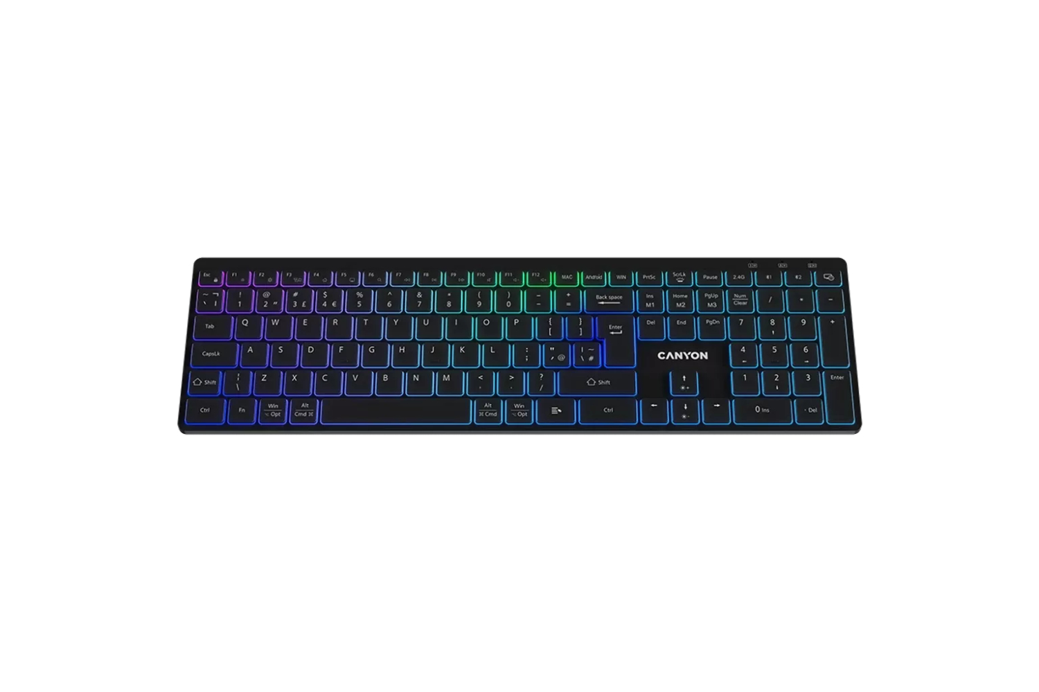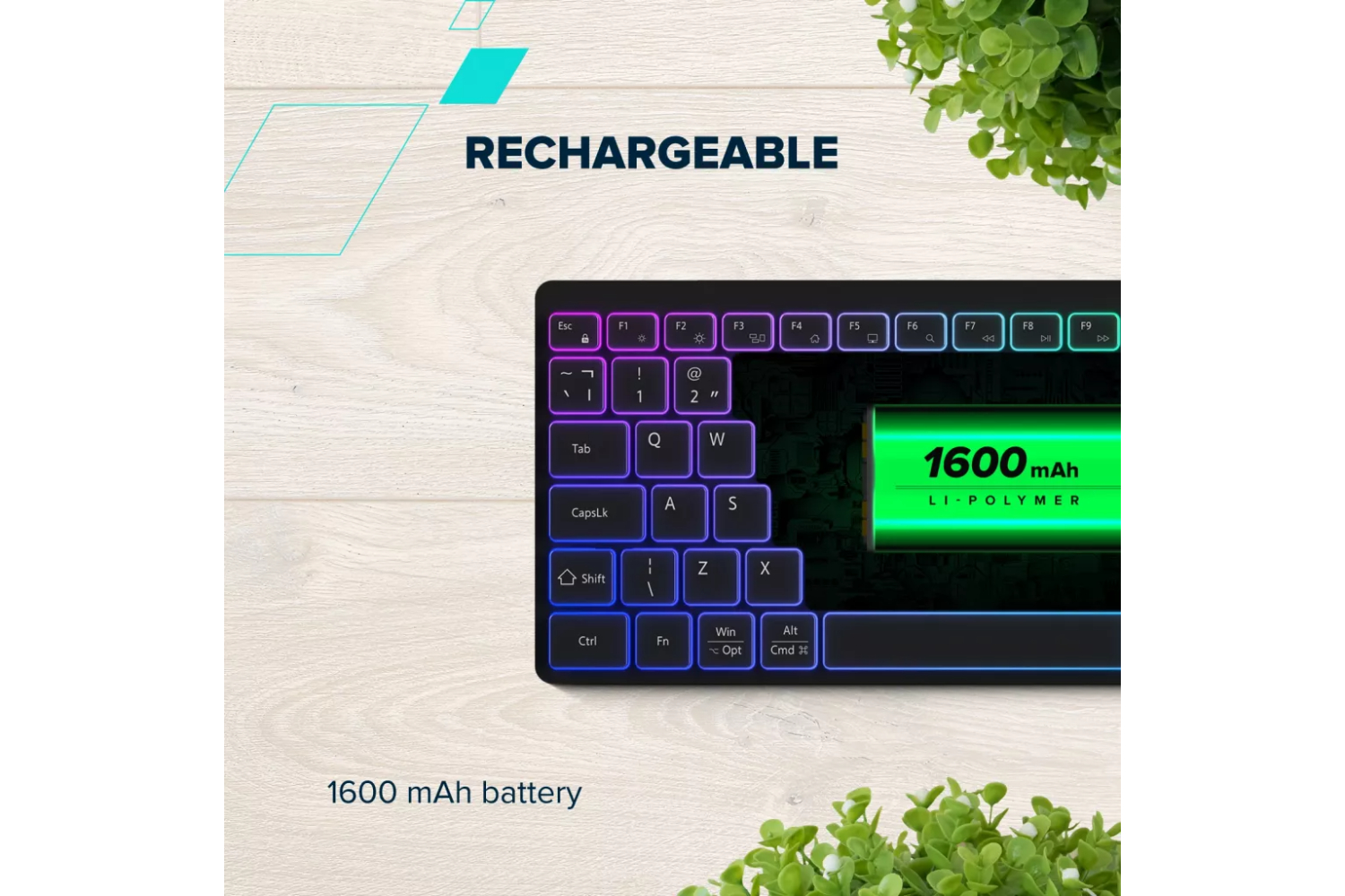Work, game, or create with seamless precision – the HKB-W11 Wireless Keyboard is designed for those who want more from their setup. With dual connectivity, switch effortlessly between 2.4GHz wireless and two BT channels. It’s perfect for multi-device users who work across laptops, tablets, and smartphones. Enjoy every keystroke with the scissor-switch mechanism that delivers a responsive, quiet, and comfortable typing experience built to last with 113 keys and a 10-million keystroke lifespan. The tactile feel enhances productivity without the noise as you’re crunching numbers, writing reports, or chatting with friends. A touch of personality is there with 7-color RGB backlighting and key illumination, so you can type in low-light settings with ease. The slim, modern design adds sophistication to any workspace, while the splash-proof construction provides durability, protecting your keyboard from accidental spills. Forget about constantly swapping batteries, too – this keyboard is fully rechargeable with a built-in 1600mAh Li-Polymer battery. You’ll get hours of uninterrupted use on a single charge. Plus, with 12 multimedia function keys, there’s instant access to volume, playback, and other essential controls at your fingertips. Compatible with Windows, Mac, iOS, and Android, the HKB-W11 is the ultimate wireless wonder for those who want power, flexibility, and a flawless typing experience every time.