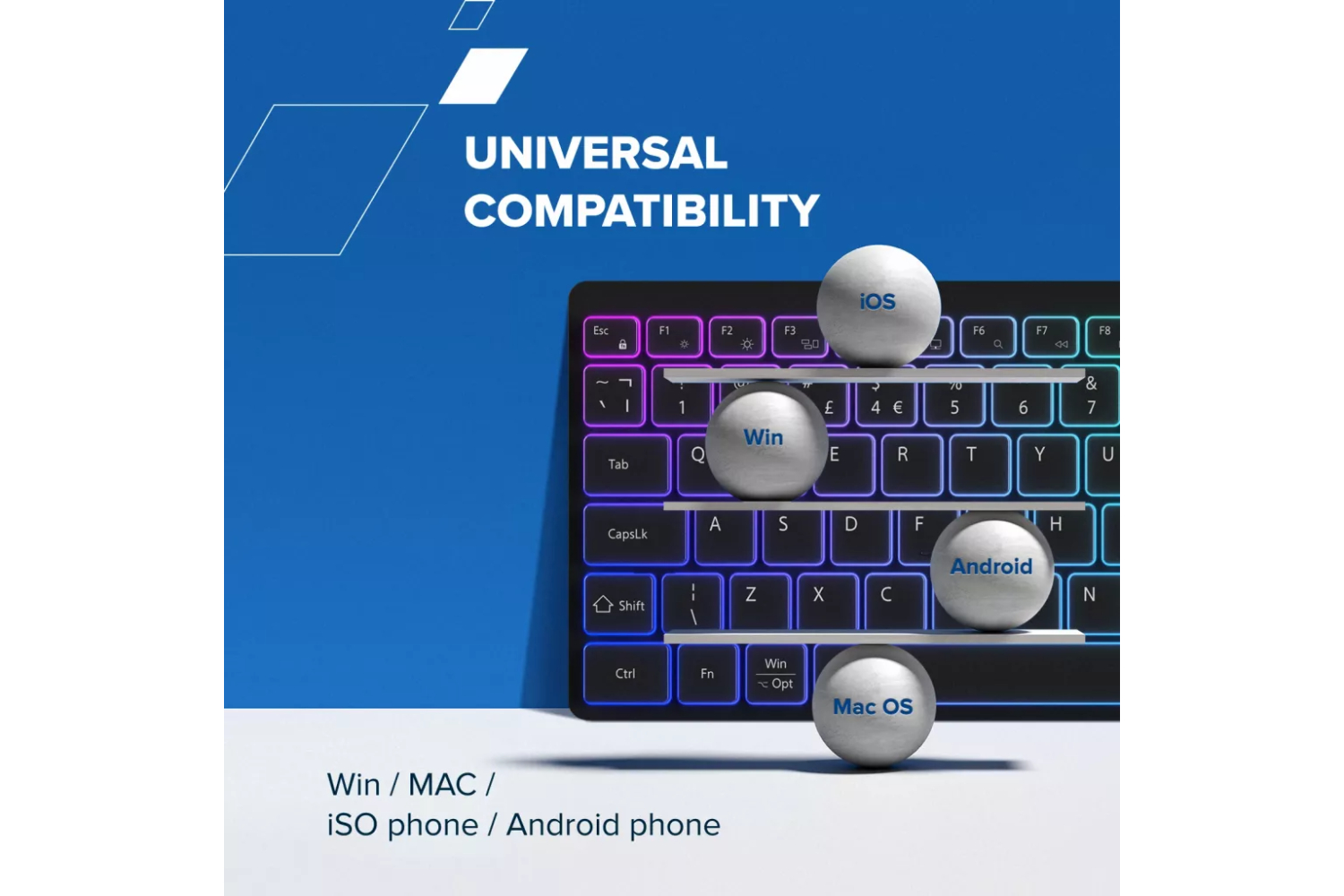 From Windows and Mac to iOS and Android, the HKB-W11 is fully compatible with a wide range of devices and transitions seamlessly between platforms. This keyboard is ready to enhance your workflow no matter the chosen device.