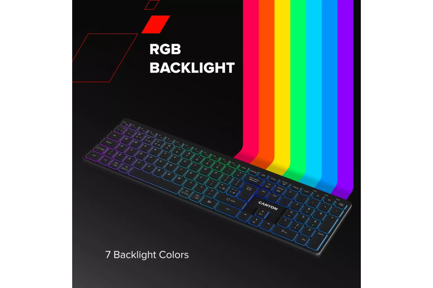Personalize your experience with 7 customizable RGB backlight colours and adjustable brightness levels. Working in a dimly lit room or just want a stylish touch? The illuminated keys enhance both visibility and aesthetics.