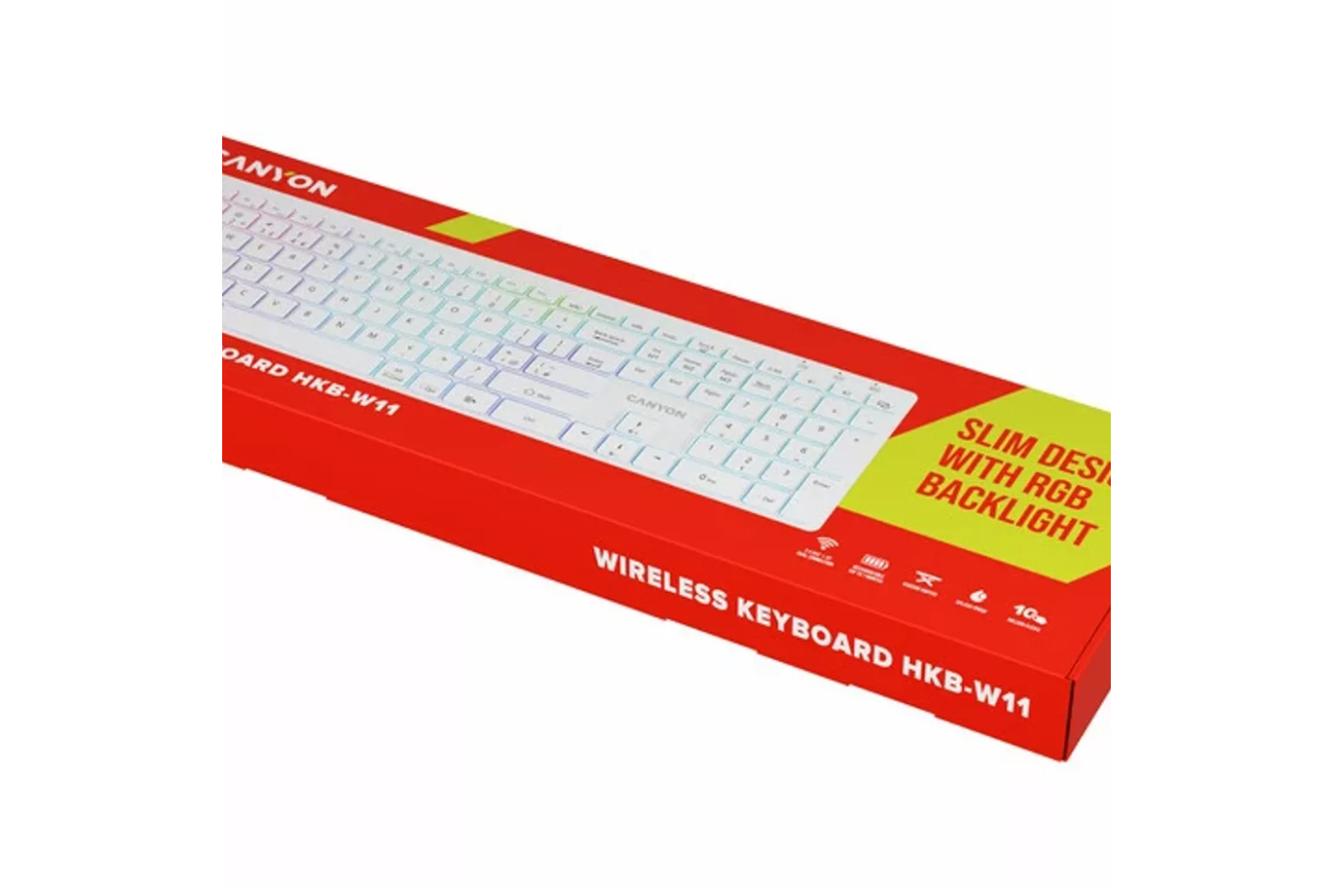 Work, game, or create with seamless precision – the HKB-W11 Wireless Keyboard is designed for those who want more from their setup. With dual connectivity, switch effortlessly between 2.4GHz wireless and two BT channels. It’s perfect for multi-device users who work across laptops, tablets, and smartphones. Enjoy every keystroke with the scissor-switch mechanism that delivers a responsive, quiet, and comfortable typing experience built to last with 113 keys and a 10-million keystroke lifespan. The tactile feel enhances productivity without the noise as you’re crunching numbers, writing reports, or chatting with friends. A touch of personality is there with 7-color RGB backlighting and key illumination, so you can type in low-light settings with ease. The slim, modern design adds sophistication to any workspace, while the splash-proof construction provides durability, protecting your keyboard from accidental spills. Forget about constantly swapping batteries, too – this keyboard is fully rechargeable with a built-in 1600mAh Li-Polymer battery. You’ll get hours of uninterrupted use on a single charge. Plus, with 12 multimedia function keys, there’s instant access to volume, playback, and other essential controls at your fingertips. Compatible with Windows, Mac, iOS, and Android, the HKB-W11 is the ultimate wireless wonder for those who want power, flexibility, and a flawless typing experience every time.