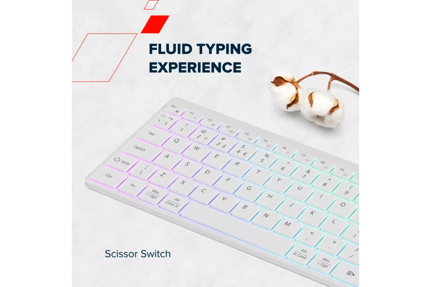 Created with ergonomics in mind, the ultra-slim profile provides a sleek and lightweight feel, making typing more natural and reducing wrist strain. The compact yet full-size layout will maximize comfort and efficiency when you're working at a desk or on the go.