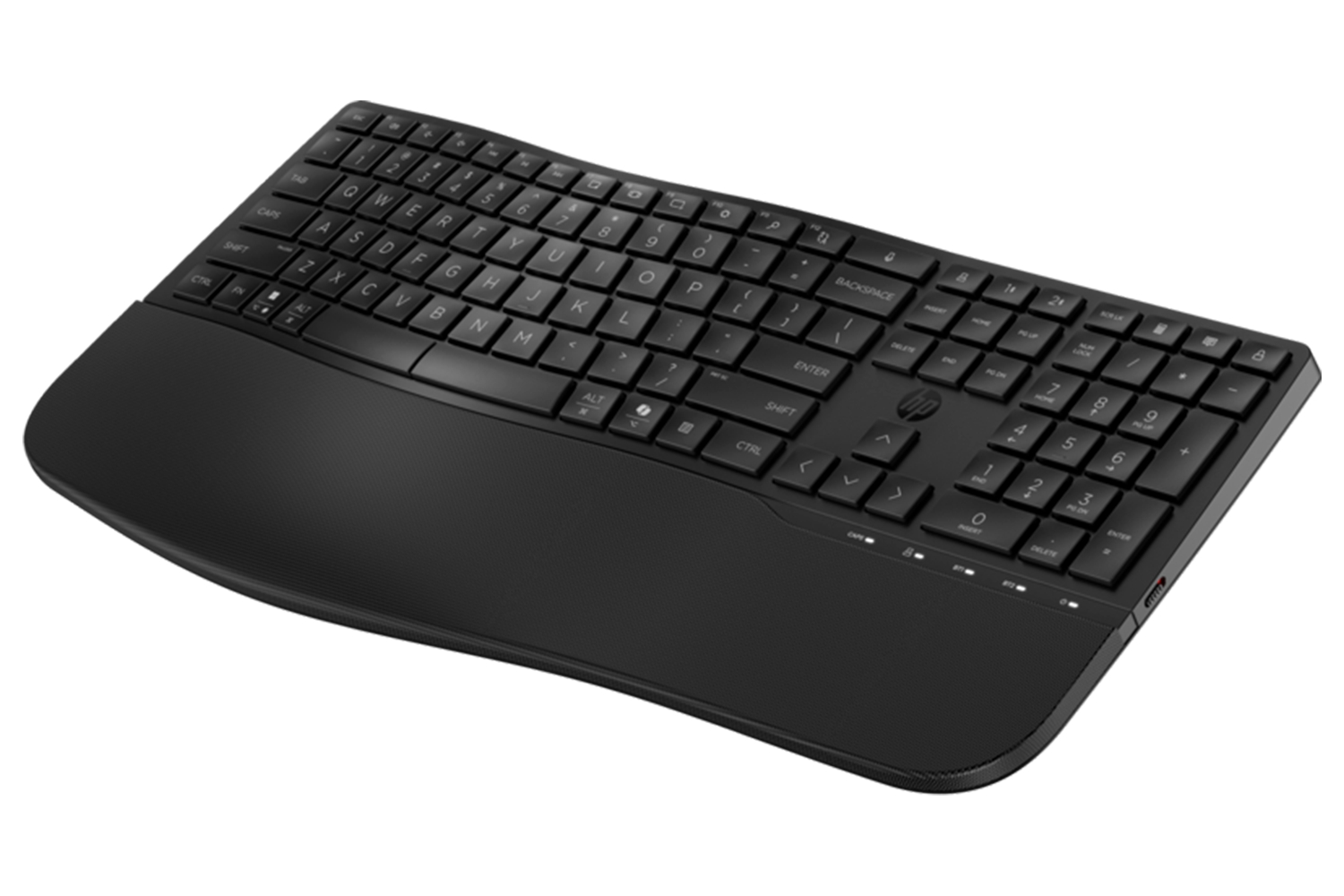 The HP 680 Comfort Dual-Mode Keyboard fits to your style with adjustable angles, programmable keys [1], and secure HP Unifying Dongle and Bluetooth connectivity.