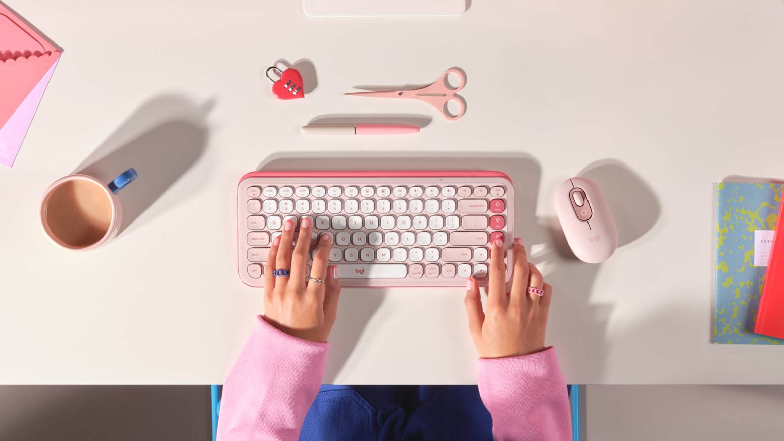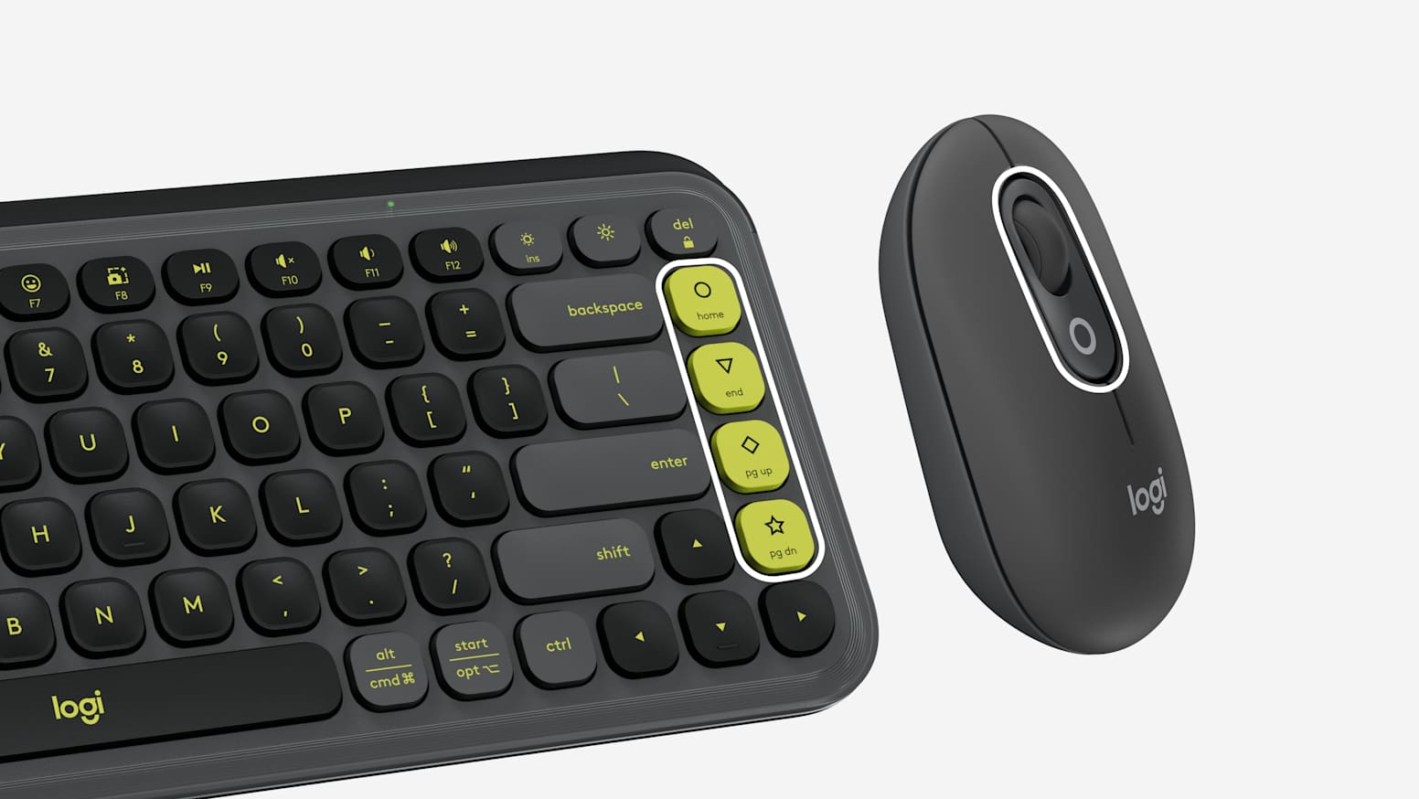 Add an extra pop to your desk with the POP Icon Combo, a wireless keyboard and mouse that are stylish, compact, and customizable, with Action Keys and Action Buttons, comfy typing and fast scrolling.