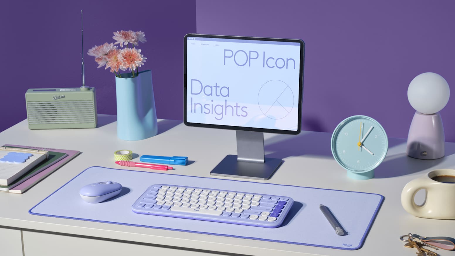 Show up with confidence and own your space with the POP Icon Combo. This stylish Bluetooth keyboard and mouse are contoured in shape, vibrant in color, and big on customization to add style to your space and make your life easier.
