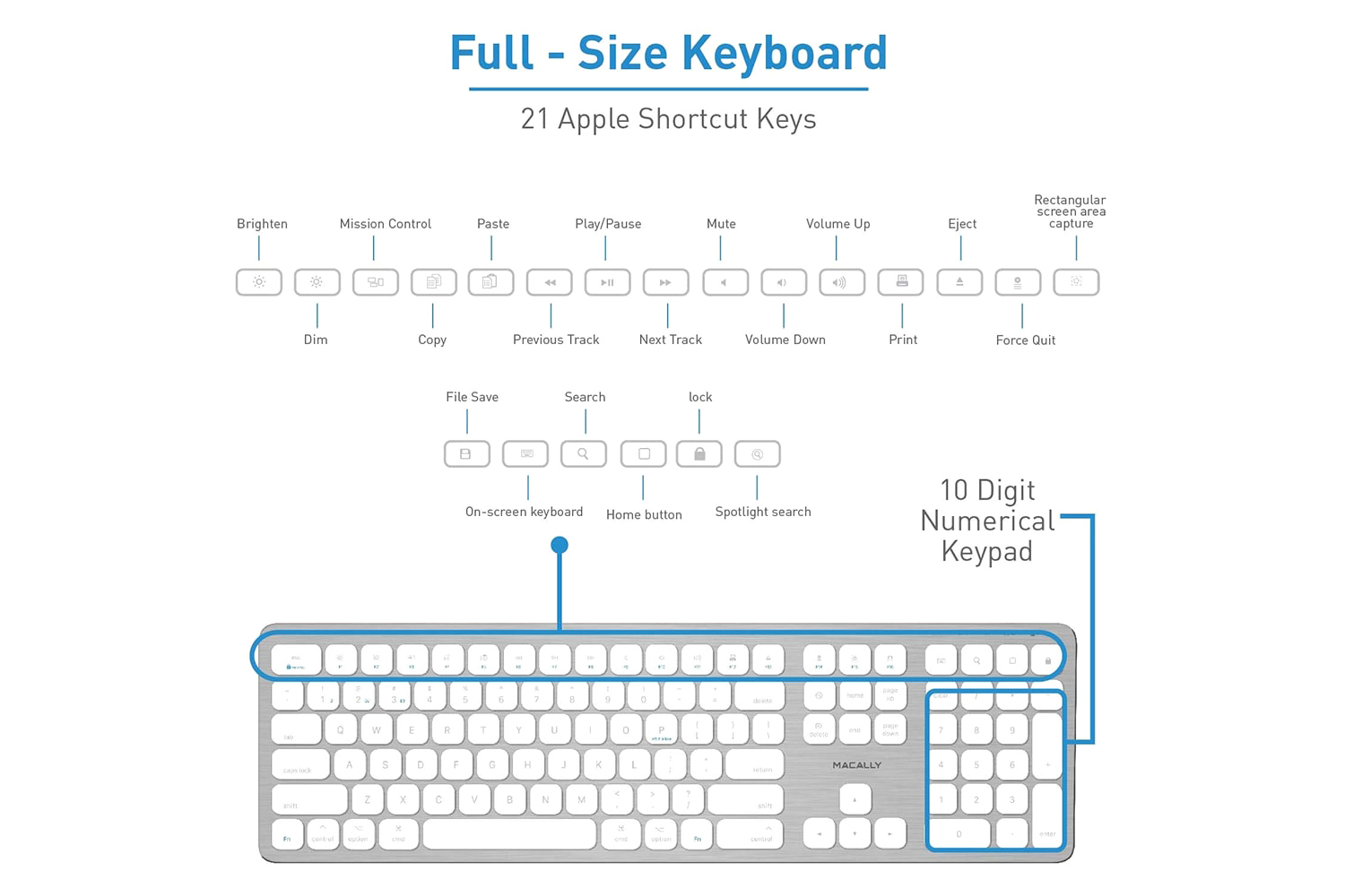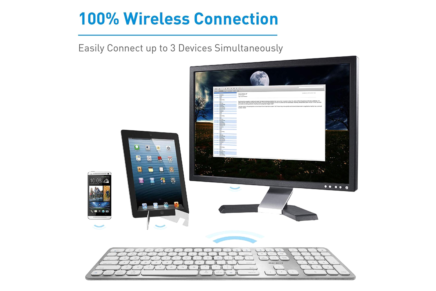 Whether you work on your Mac, send messages on your iPhone or enjoy movies on your iPad, the stylish and slim Macally is truly the only keyboard that you need for all your applications.