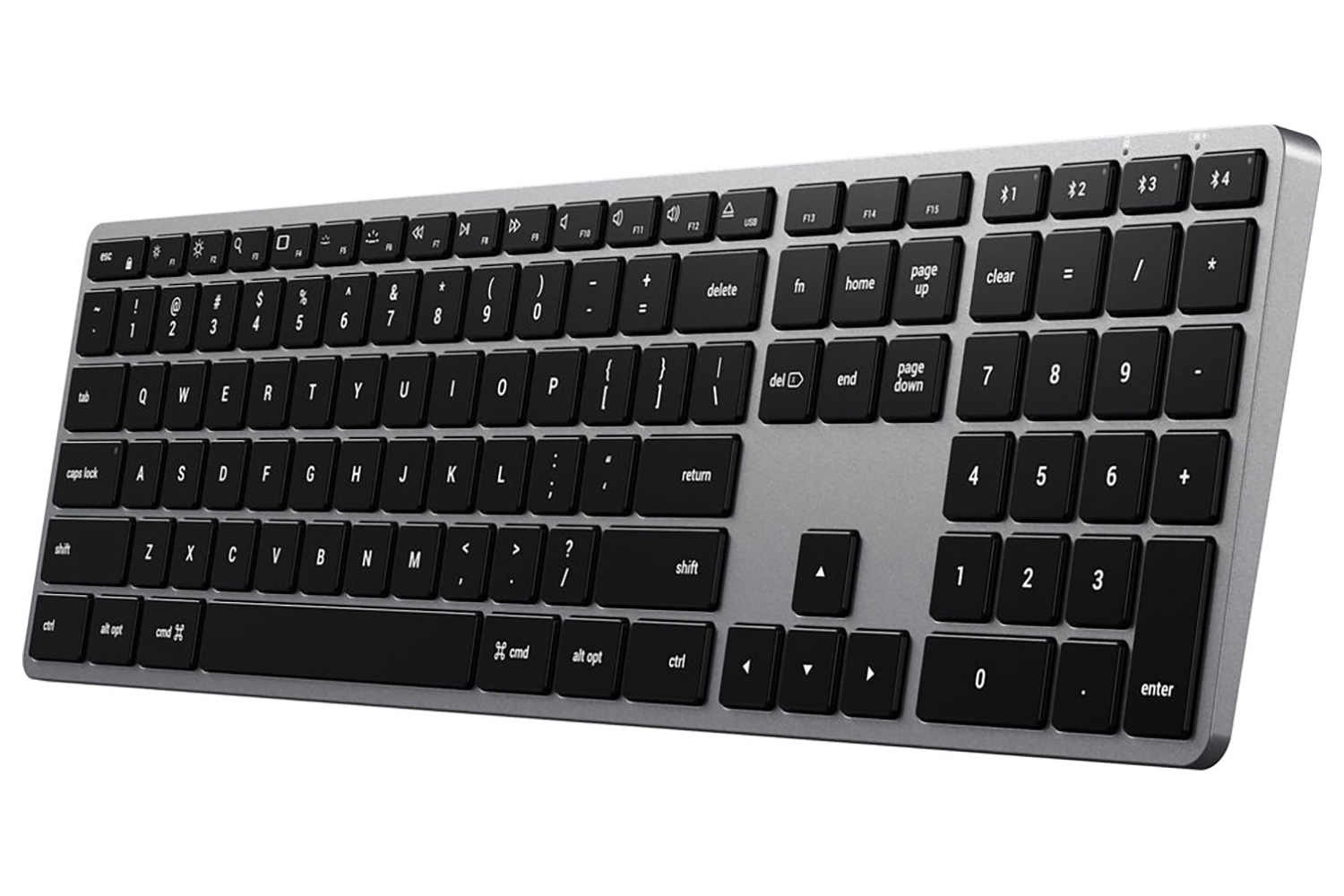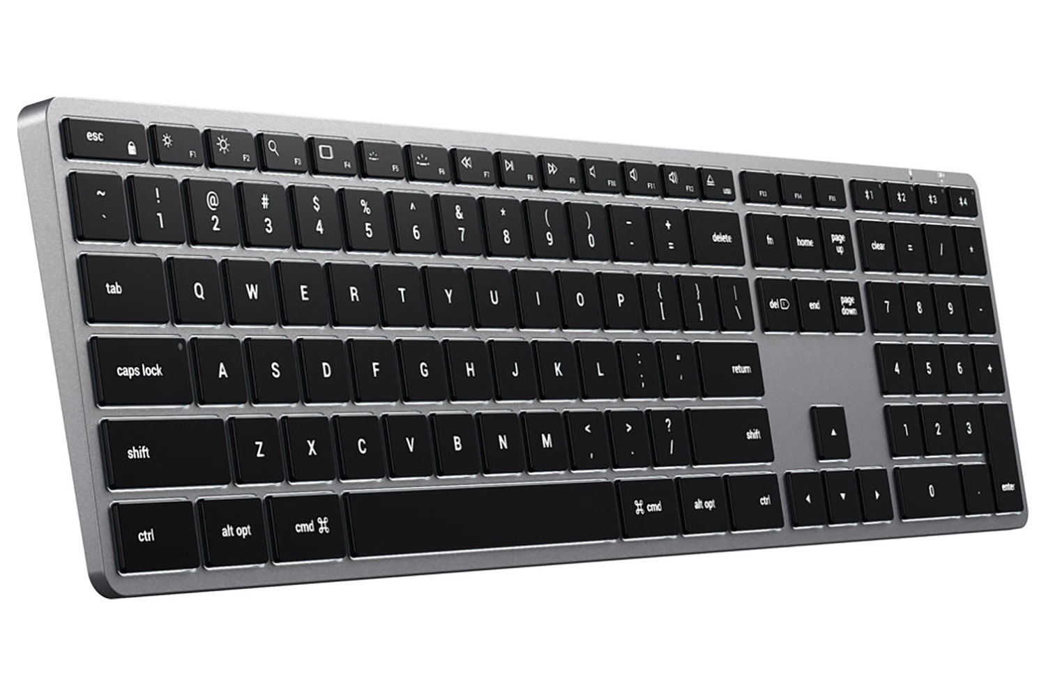 Designed with Apple users in mind, the Satechi Slim X3 Bluetooth Backlit Keyboard includes all the features you need, like an extended keyboard layout with a numeric pad, easy-to-use Bluetooth, adjustable backlit keys, and MacOS function keys – all with sleek aluminum finishes.