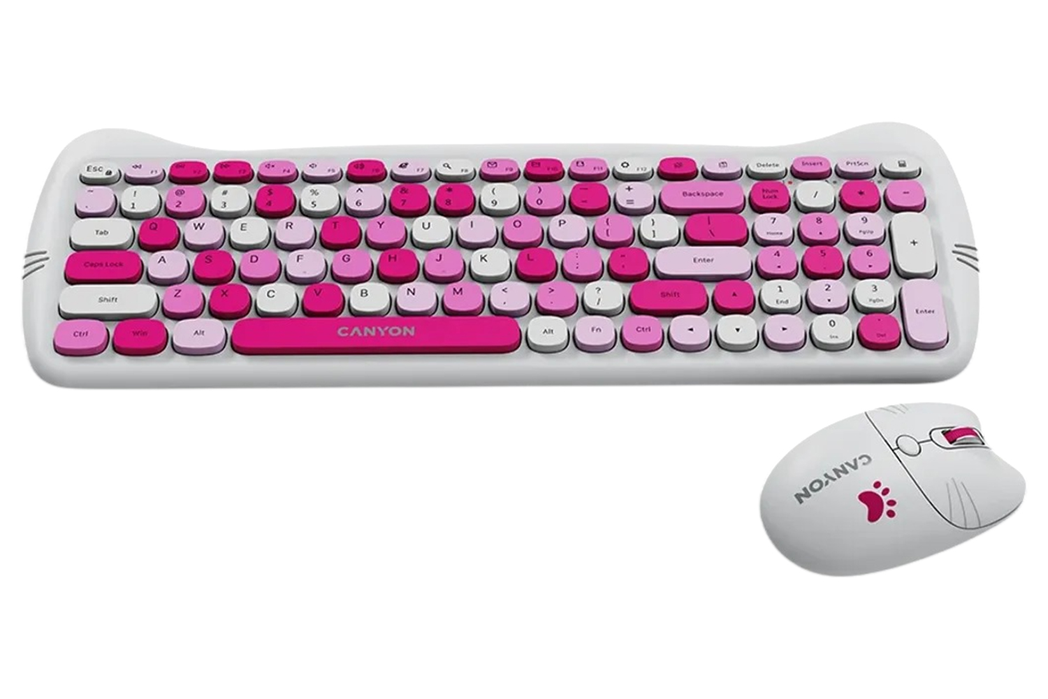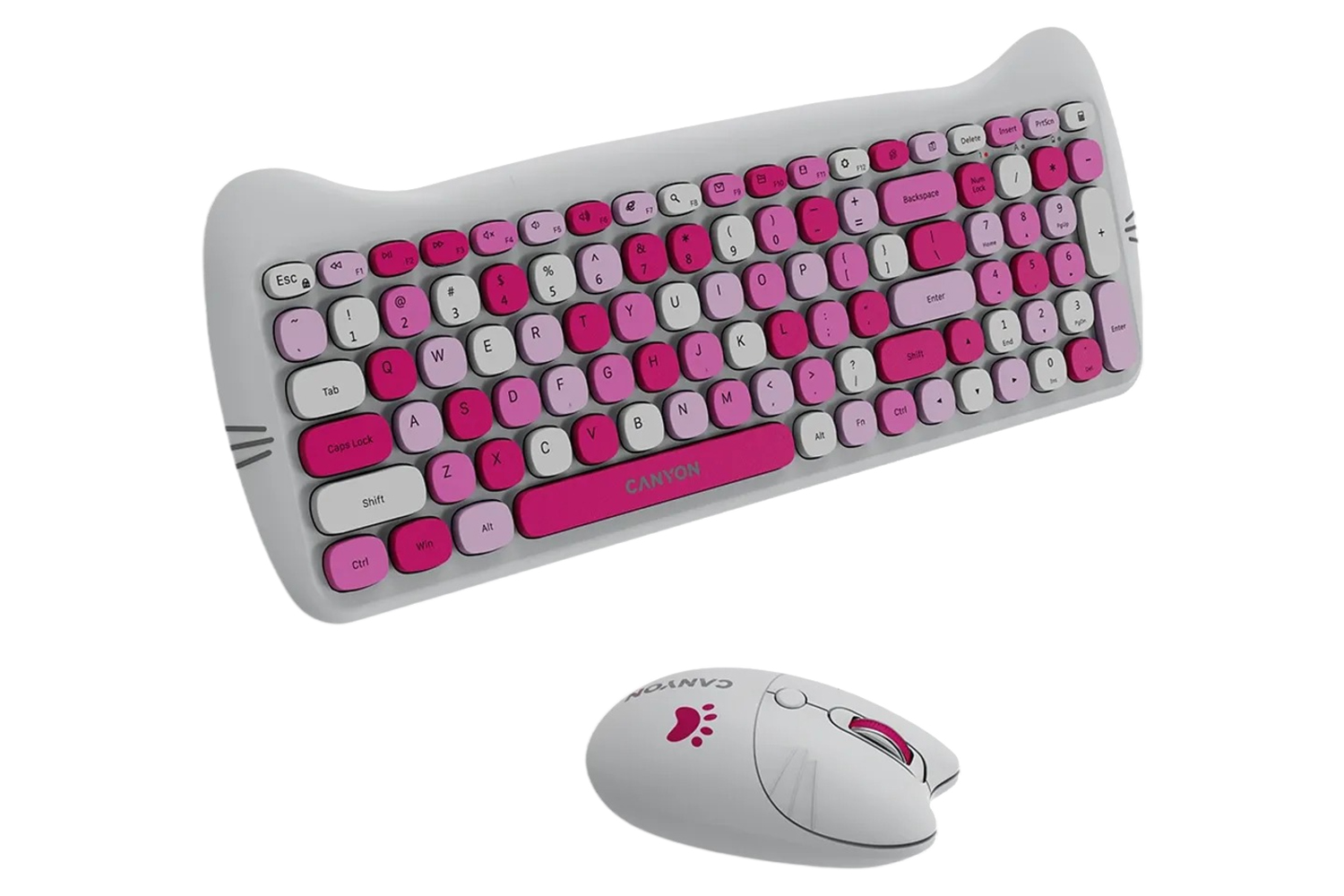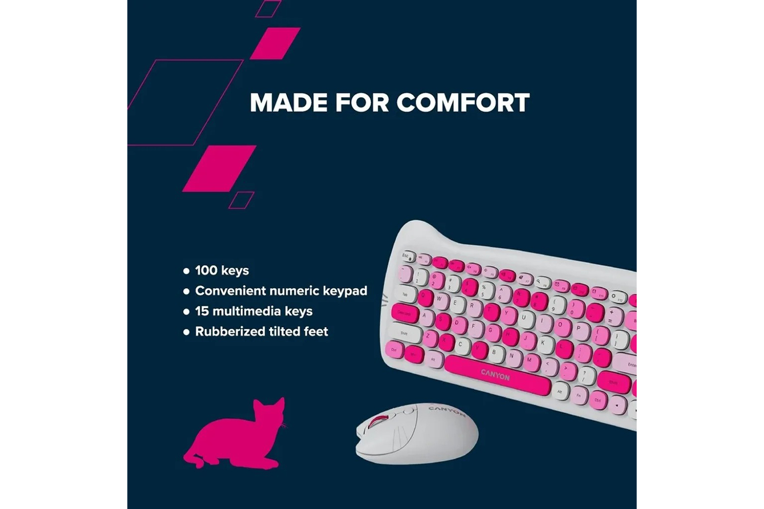 Canyon Wireless Keyboards & Mouse Combo HSET-W6 Kitty Edition | Pink