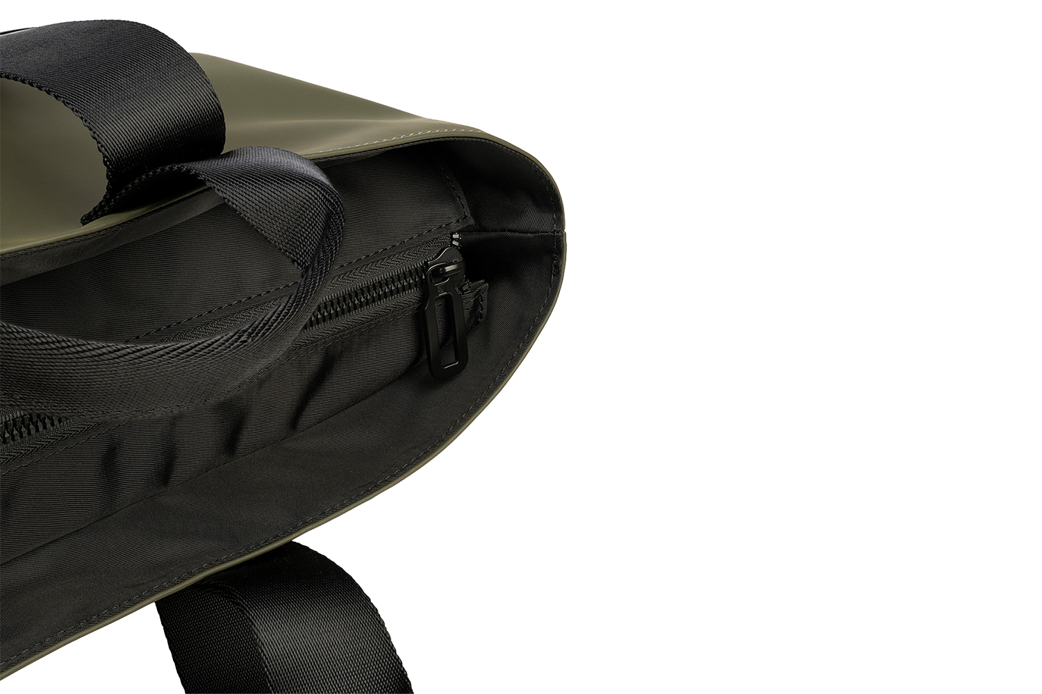 Shopper in rubberized material Equipped with a large compartment featuring a padded pocket for laptops up to 14" and an external pocket for accessories, the Gommo bag has webbing handles and shoulder straps.