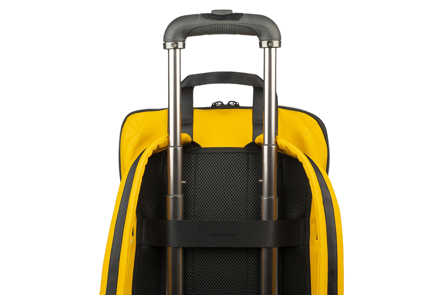 Backpack featuring a minimal-sporty design for 15.6" laptops and 16" MacBooks, in rubberized material. Equipped with a large single compartment, the Gommo backpack has an internal pocket for laptops and an external pocket for accessories. It also features a breathable mesh back as well as a convenient trolley strap.
