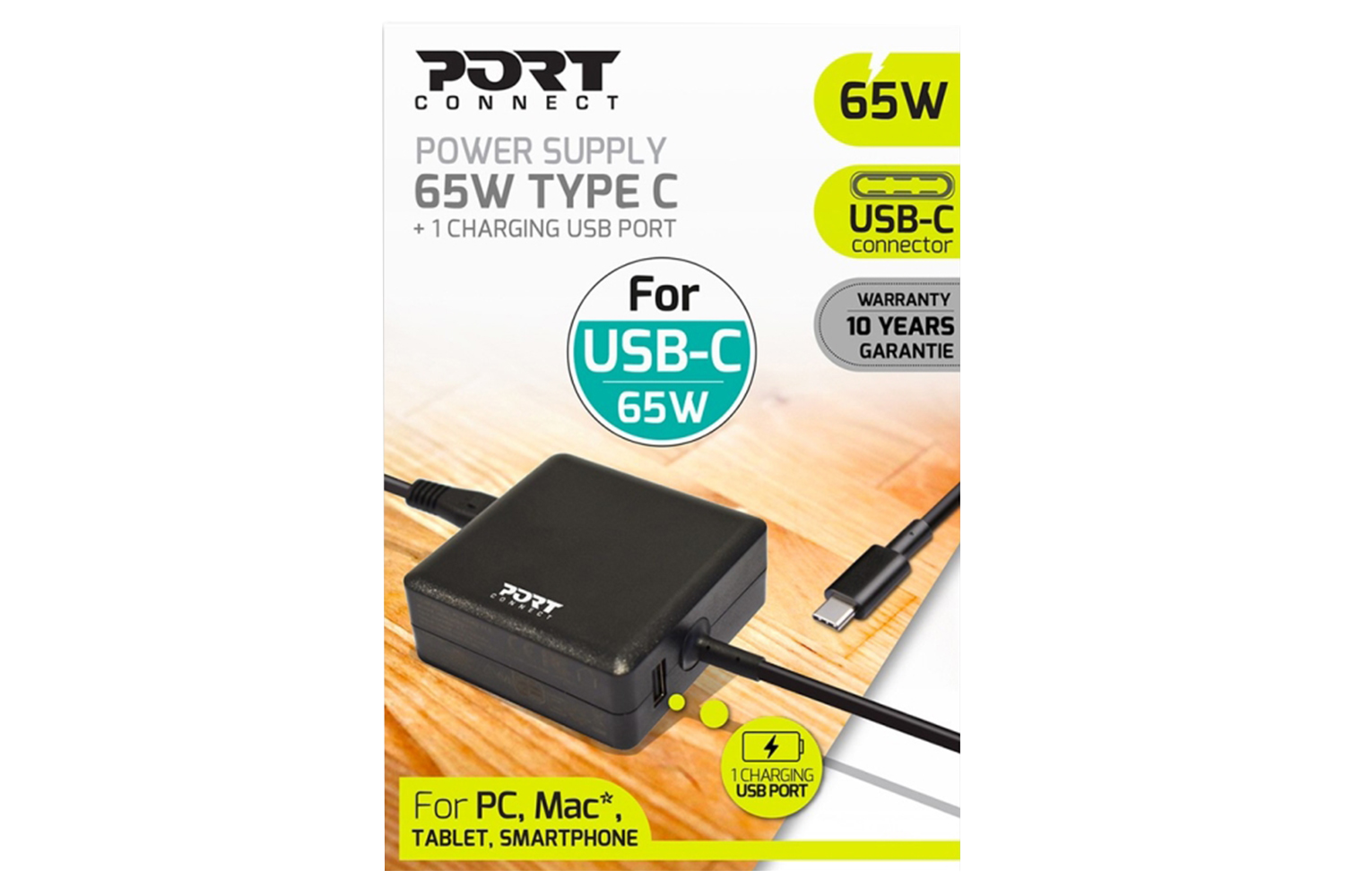 Port Designs 65W Type-C Laptop Power Supply with Charging USB Port is rated