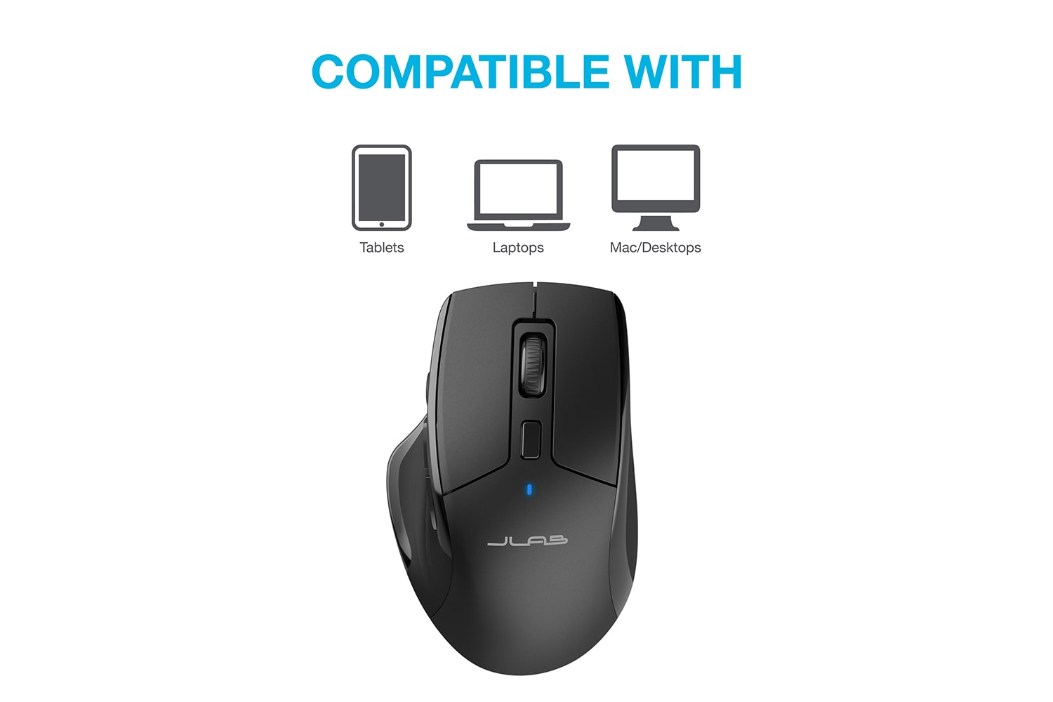 The JBuds Wireless Mouse is compatible with three—count ‘em, three!—device connection options. You can pair with nearly any type of device using Bluetooth 5.2, or USB. We hate pairing confusion too, so we made it super easy for you to switch between saved devices.