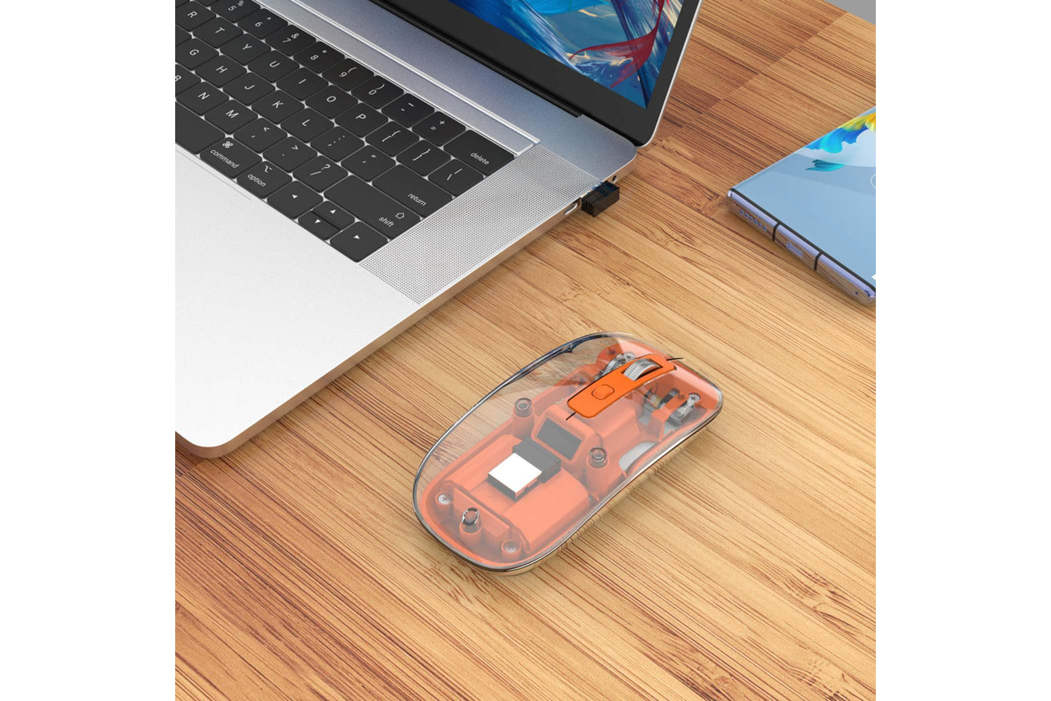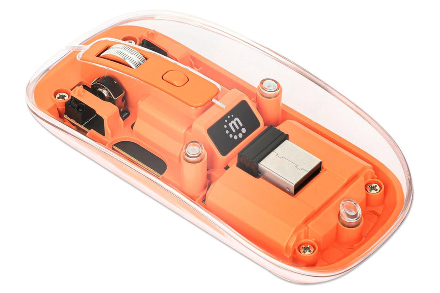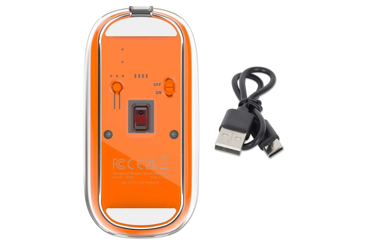 Manhattan Rechargeable Wireless USB Mouse | Clear/Orange