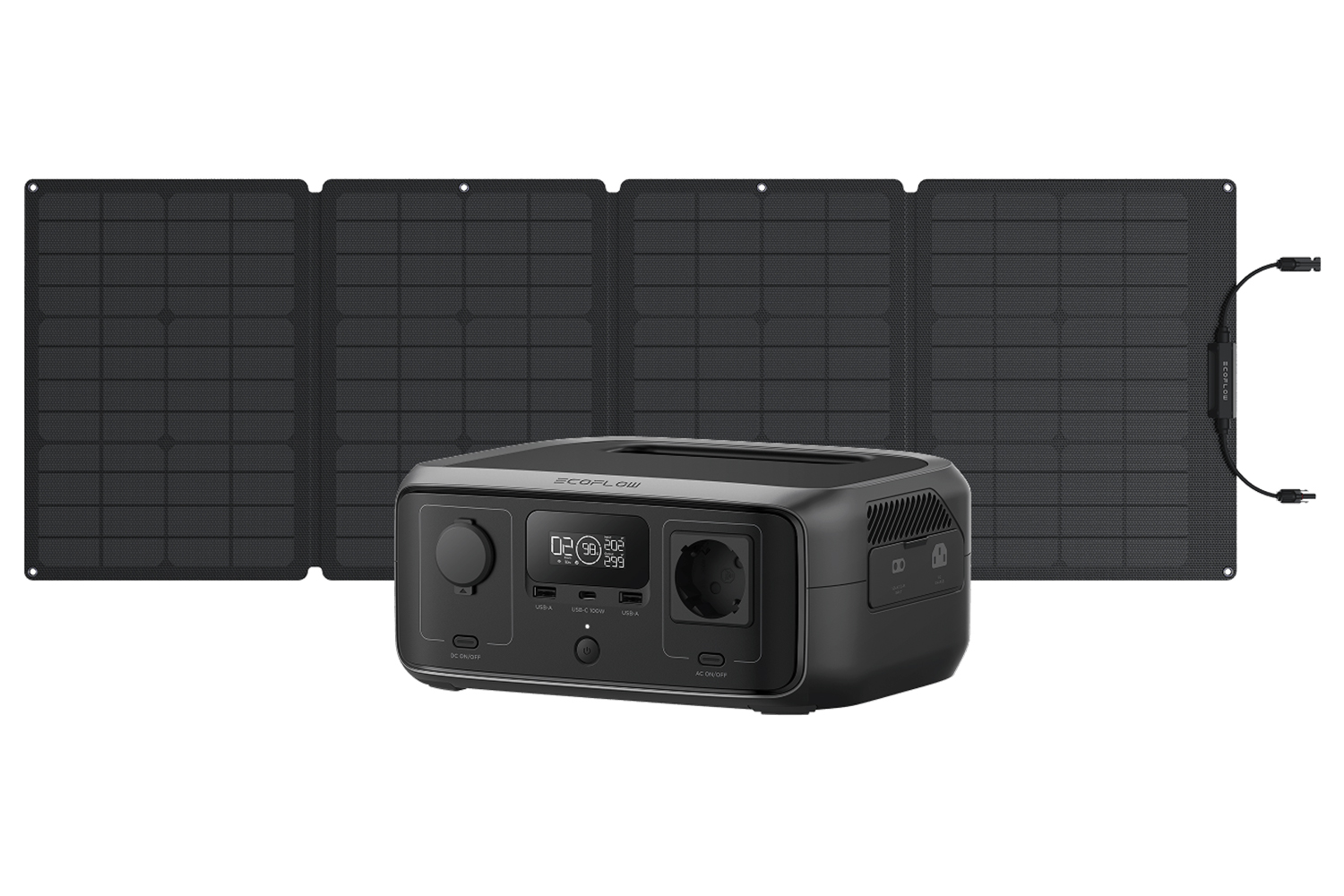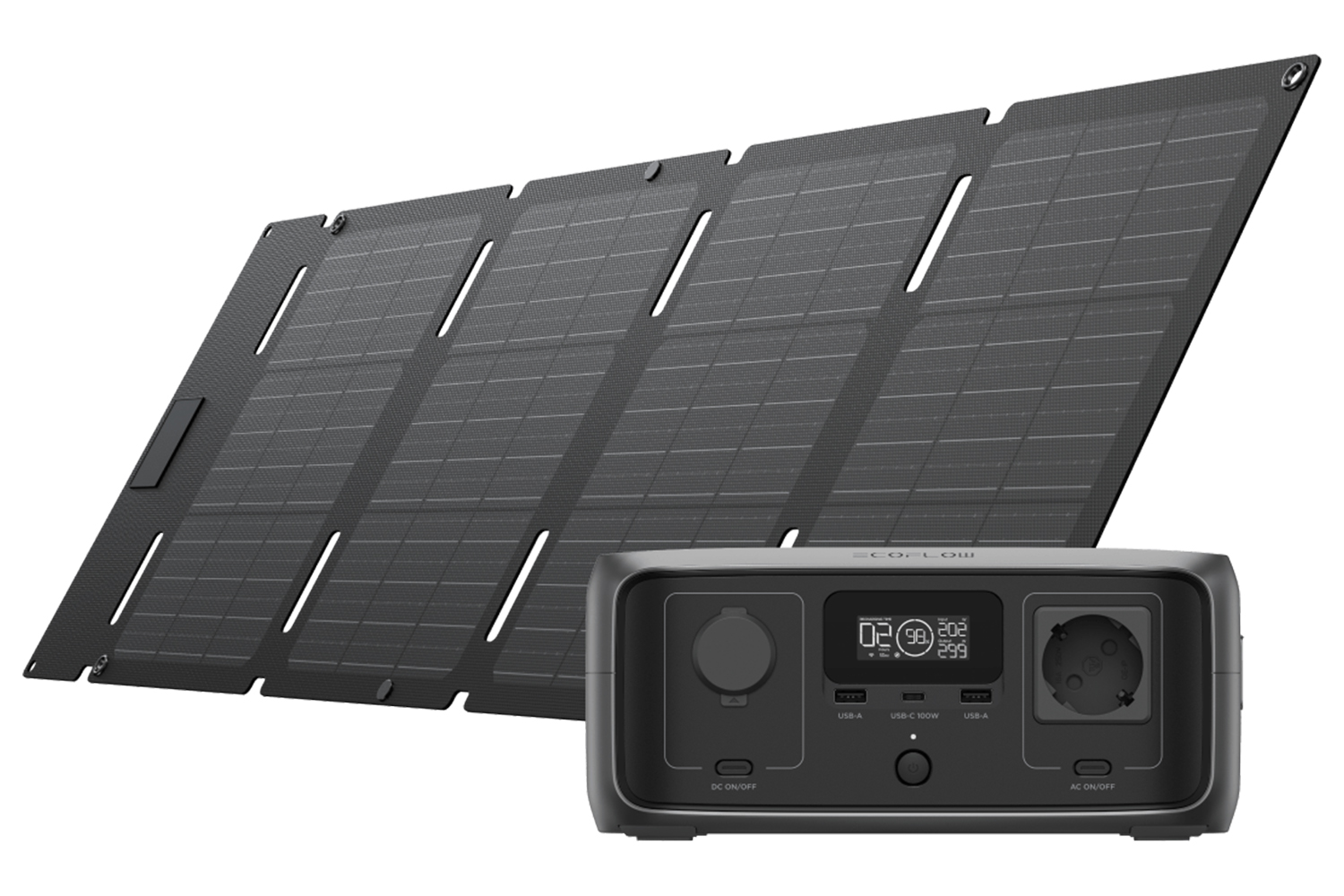 Power up River 3 in as fast as 2.6 hours with 110W solar input. Go even more portable with EcoFlow 45W portable solar panel (Type-C), which folds to the size of a laptop and charges electronics directly.