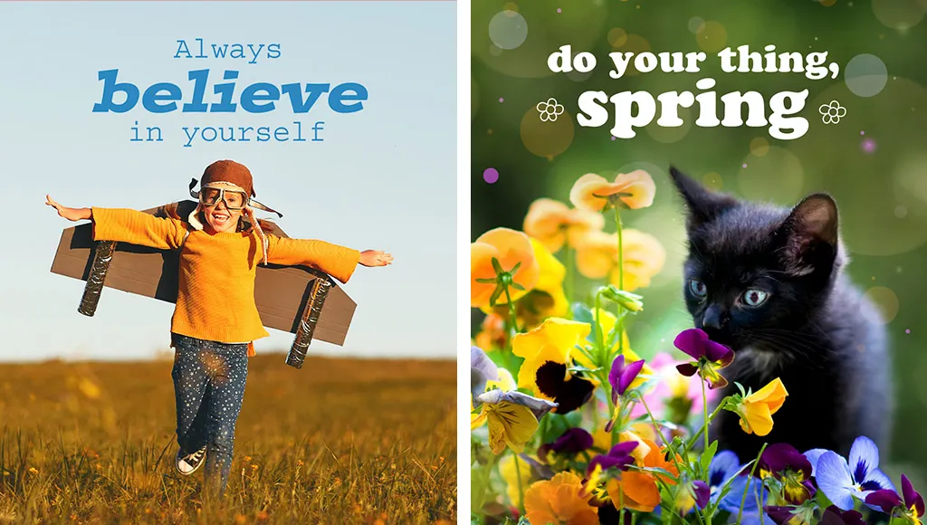 Make shareable quote graphics for social by adding inspiring or personalised messages to your pics with templates, animation and easy ways to customise.