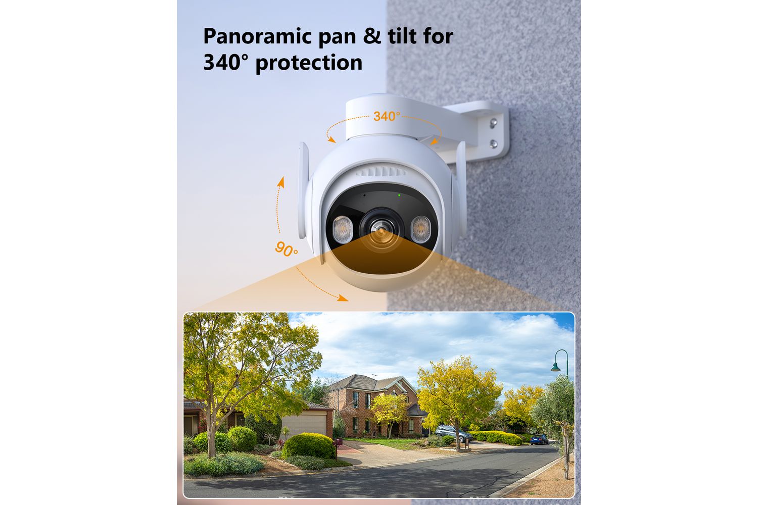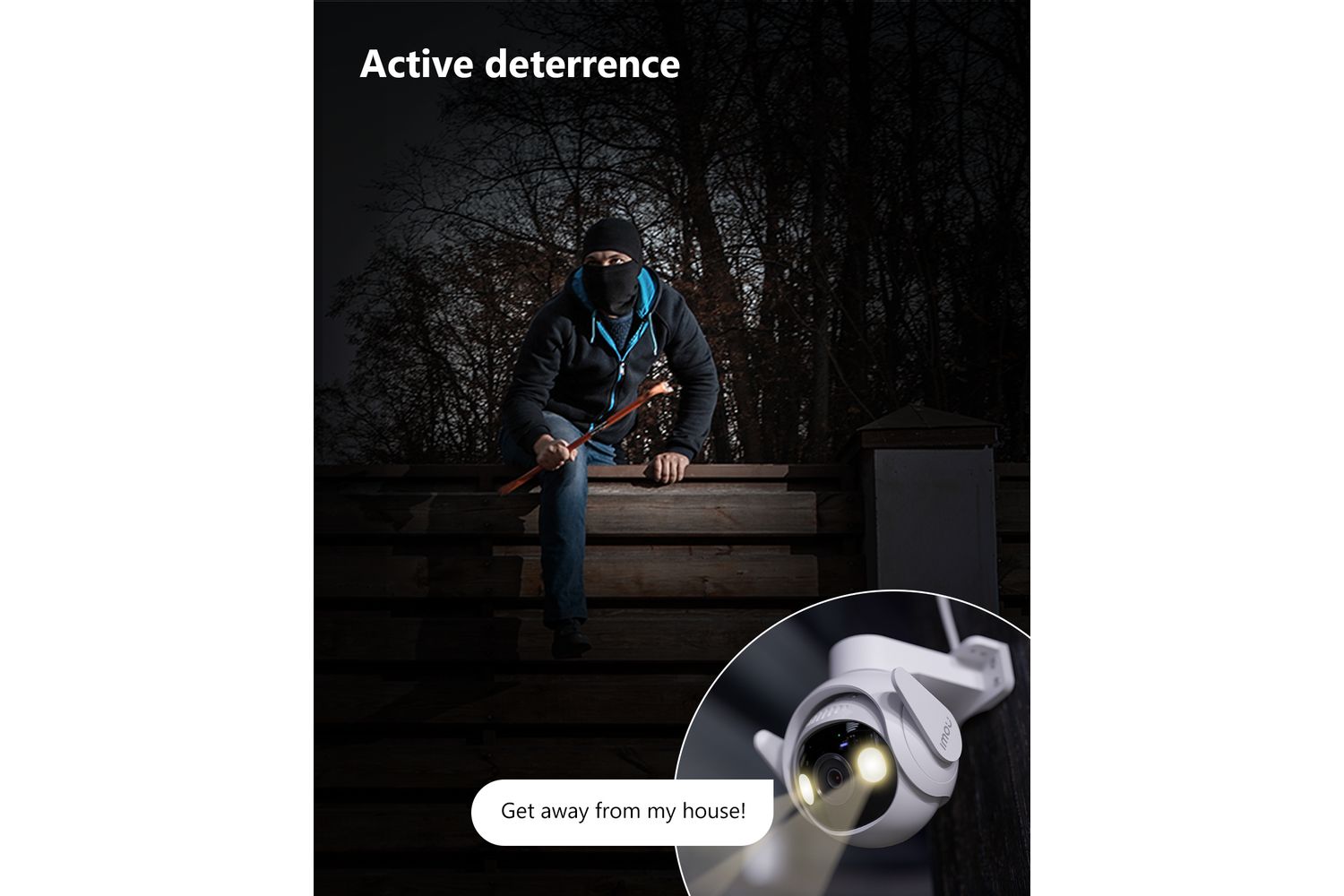 - Active deterrence: Built-in spotlights & 110dB Siren