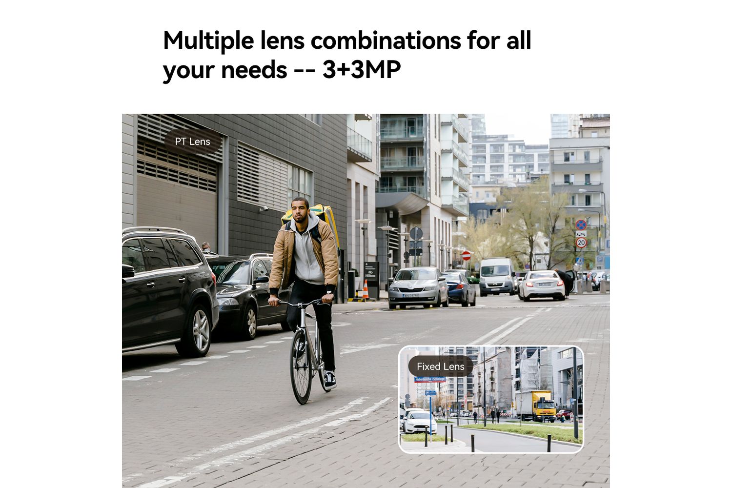- 6MP Ultra HD resolution: 2K/3MP pan-tilt lens + 2K/3MP adjustable fixed lens