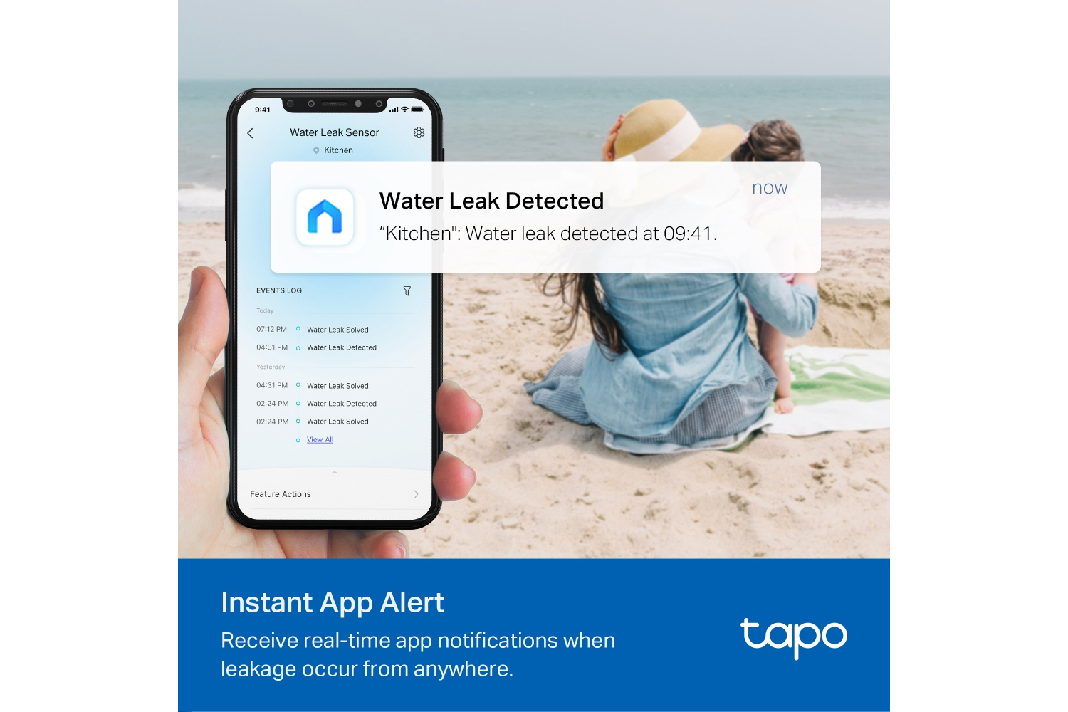 - Instant app notification: Receive instant alerts via the Tapo app when a leak occurs from anywhere