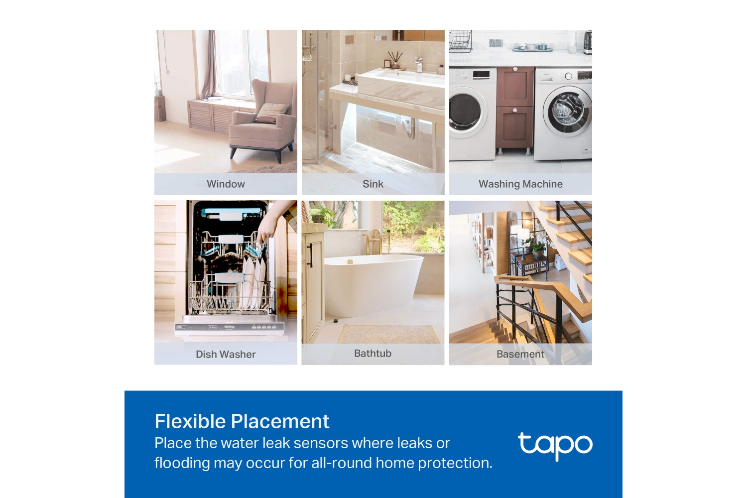 - Flexible placement: Wireless, designed to place in anywhere leaks or flooding may occur, like under the sinks, near washing machine, bathtub and more