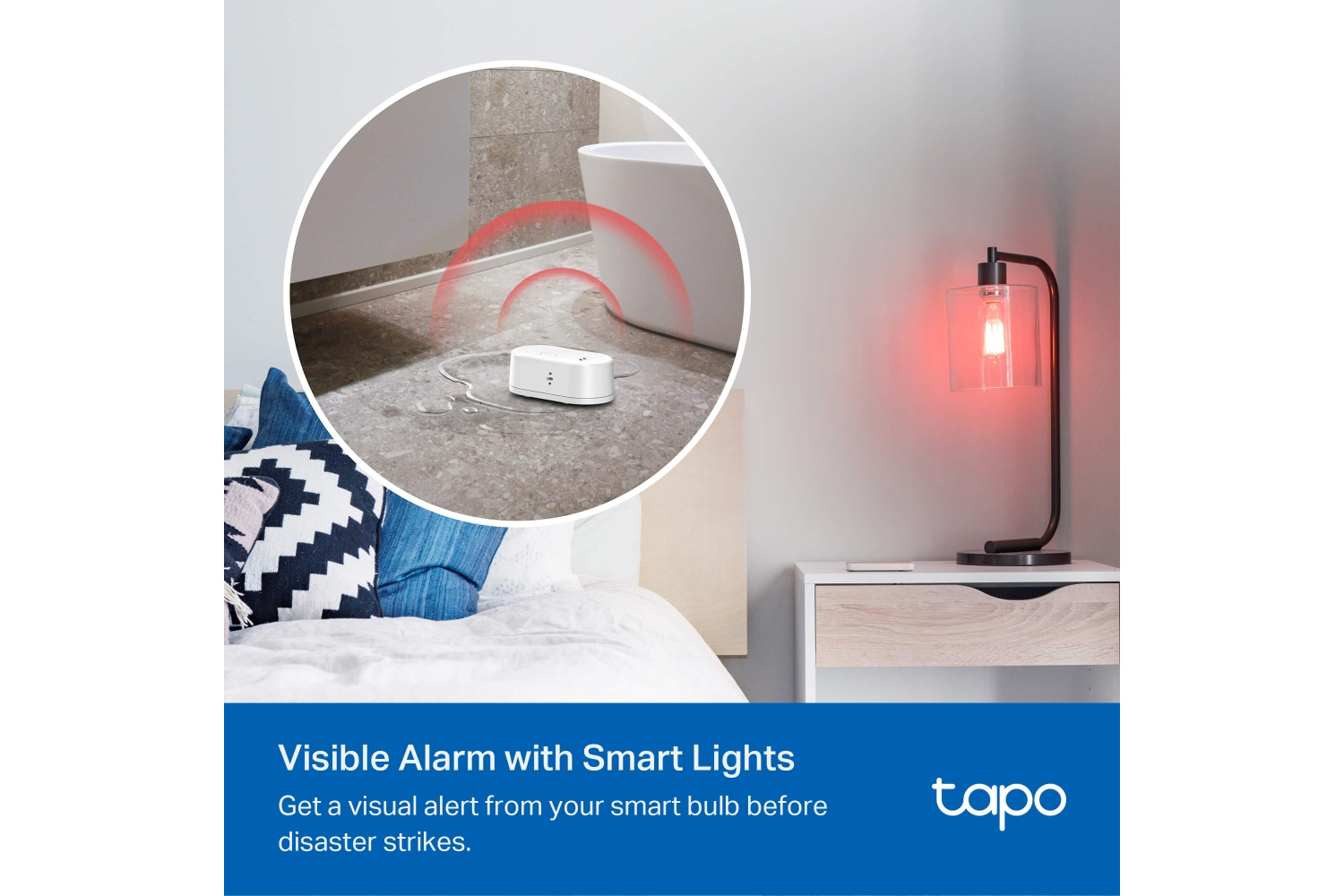 Create a Smart Action in the Tapo app to connect your smart lighting with the Tapo Smart Water Leak Sensor. Get a visual alert from your smart bulb before disaster strikes.