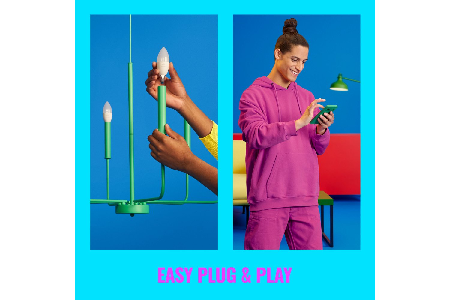 Bring tunable smart light in any shade of warm or cool white to your candelabra fittings with a WiZ smart LED E14 candle bulb. Use with your existing Wi-Fi to control with the WiZ app or your voice.