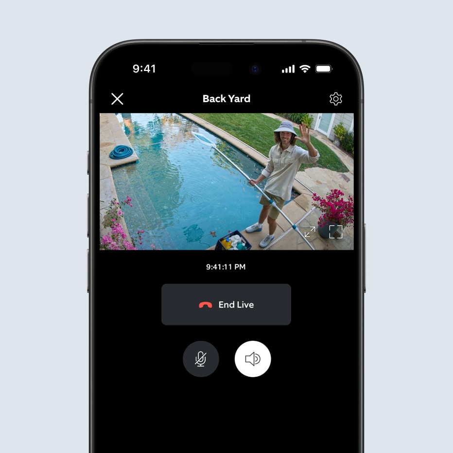 Check in on home at any time from anywhere, and get real-time video and audio with the Live View button.