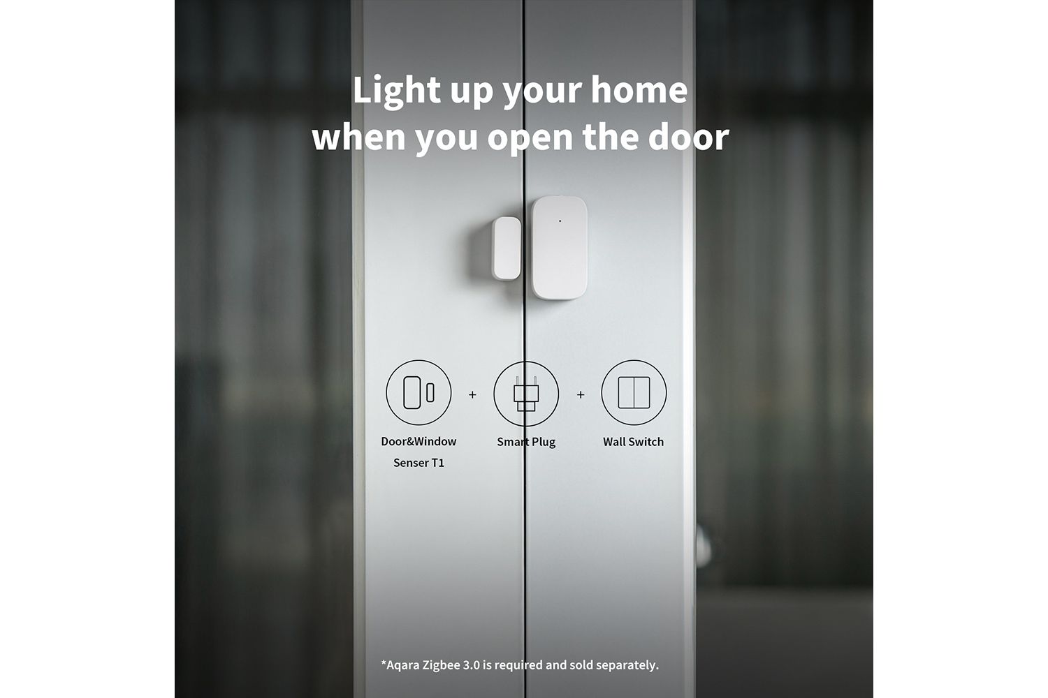 You can trigger different scenes and automations with Aqara suite of smart home products. For example, when you open the door in the evening, the Aqara Door and Window Sensor T1 will send a signal to the Aqara Wall Switch to turn on the lights. No matter how late you get home, the lights will automatically turn on.