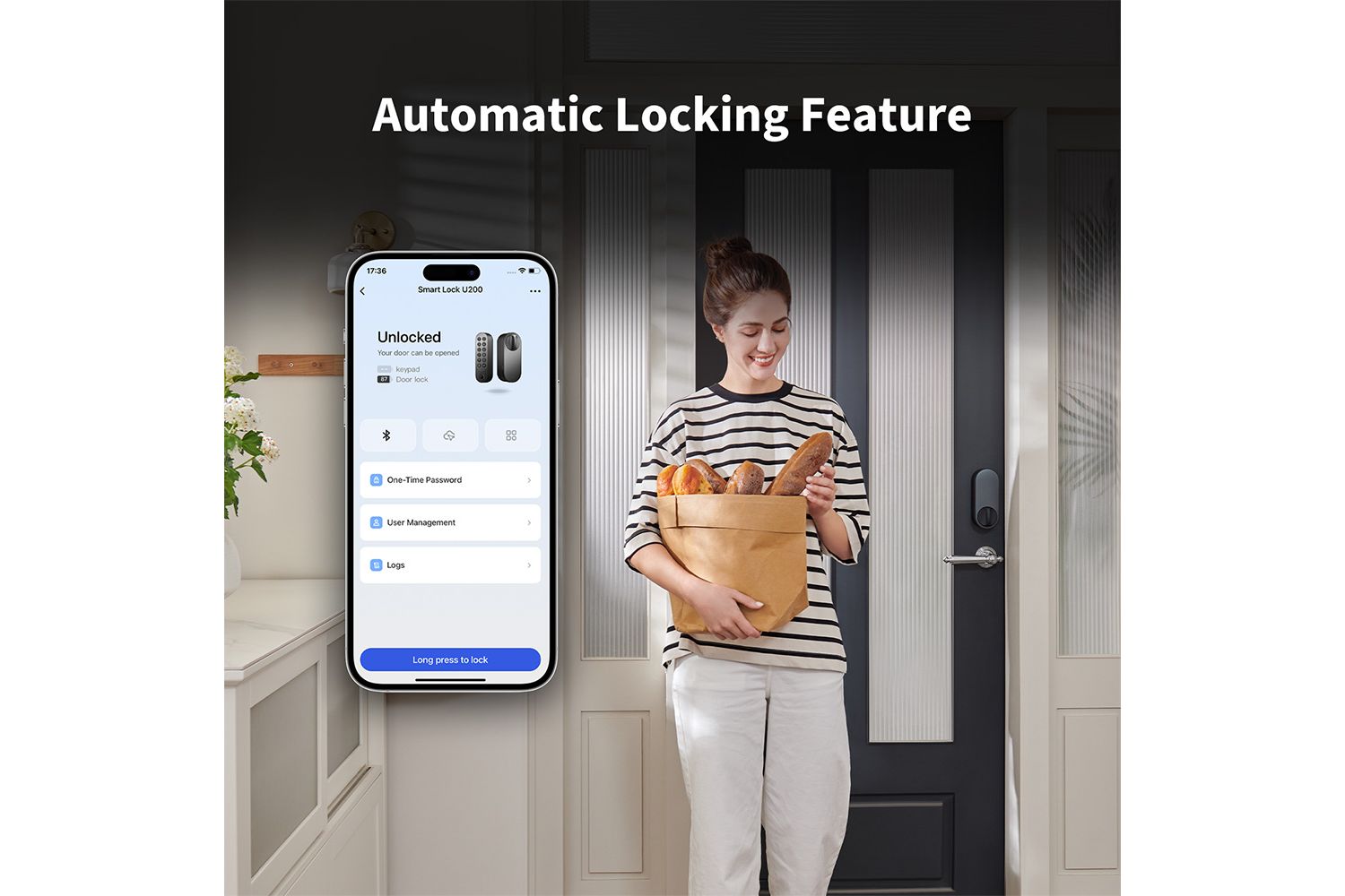 The U200 offers a variety of convenient unlocking methods, including Apple Home Keys (requires Apple 2-in-1 Matter controller & Border Router), fingerprint**, password, NFC *, and more. You can control the door lock using the app, either through integrated Bluetooth or via Thread for remote access. Additionally, it supports temporary passwords, such as one-time and periodic passwords, for easy sharing with others. The device also accommodates mechanical keys for emergencies.