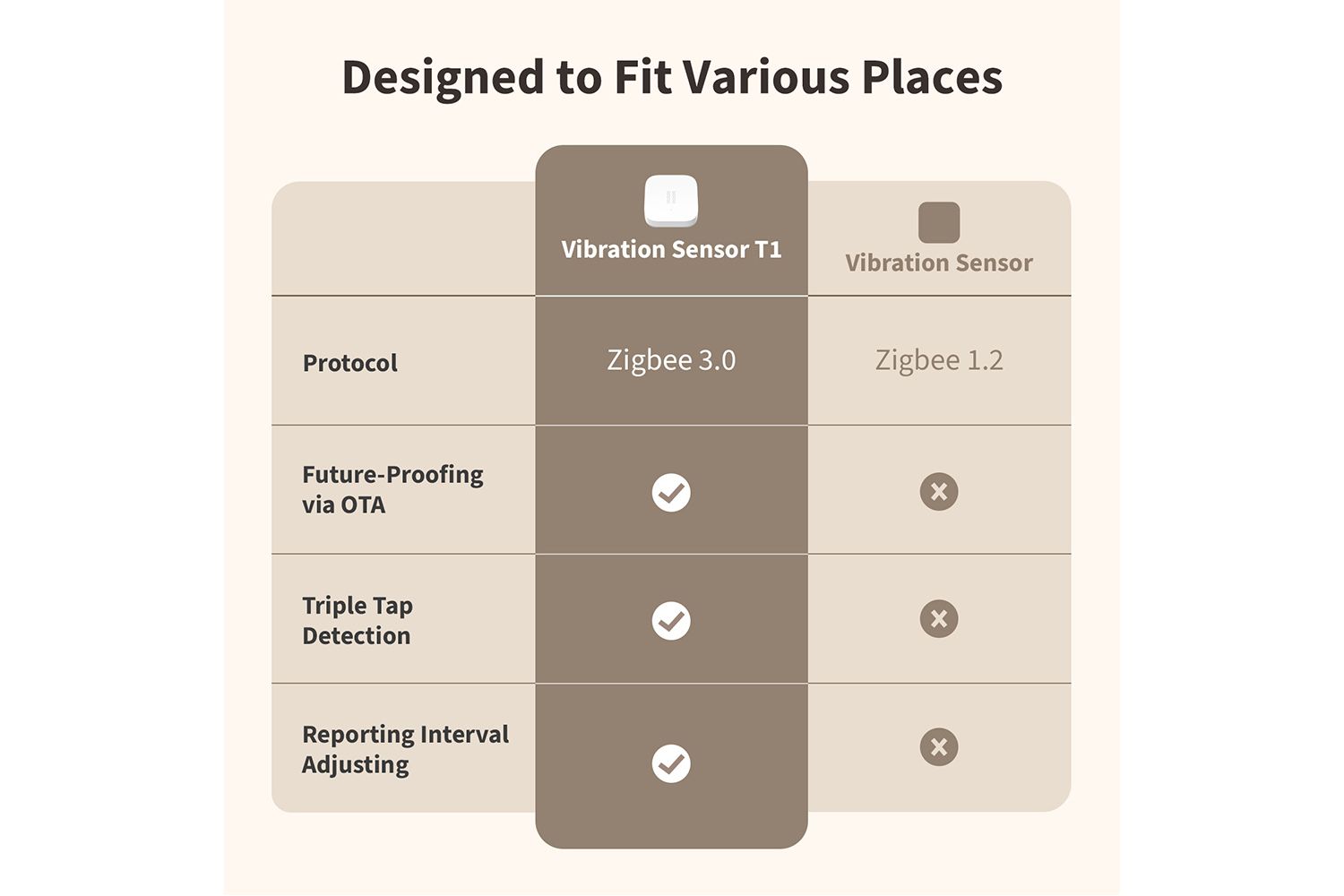 Detect vibration, tilt, and drops with the Aqara Vibration Sensor T1. Get real-time alerts, smart automation, and Matter support.