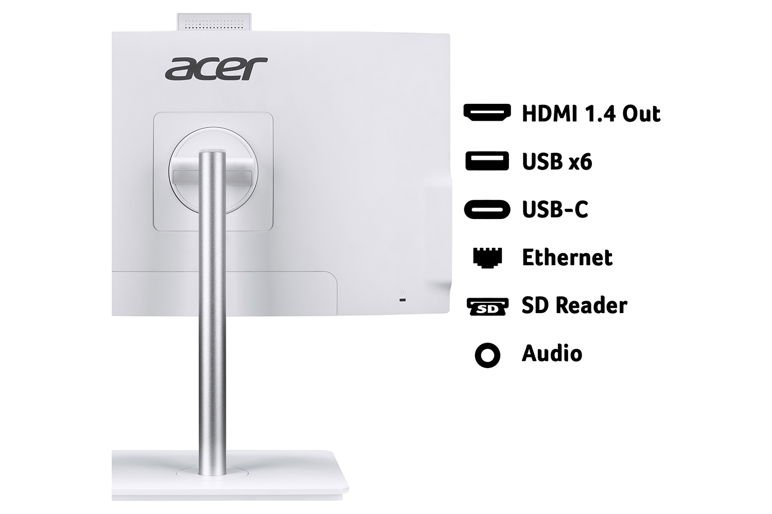 Staying connected is easy with built‑in Wi‑Fi 6 and an Ethernet port. The Aspire C24-A also offers a wide range of modern ports, including multiple USB ports (USB-A & USB‑C), HDMI, and an SD card slot for effortless expansion and accessory support.