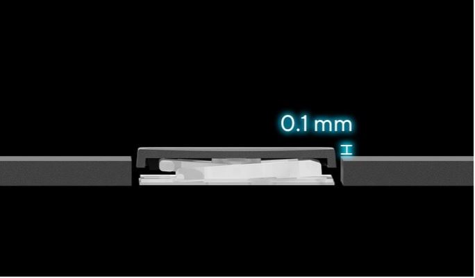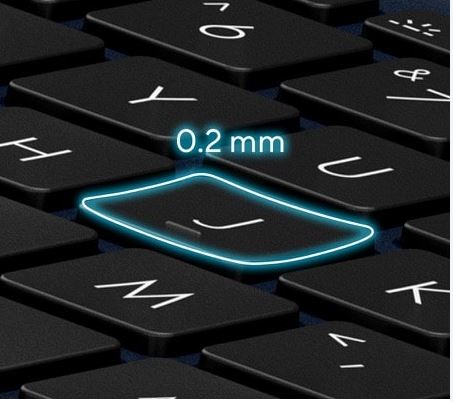 The 0.2 mm key-cap dish is designed to match the shape of your fingertips so your fingers are gently guided to the ideal contact point with the keys.