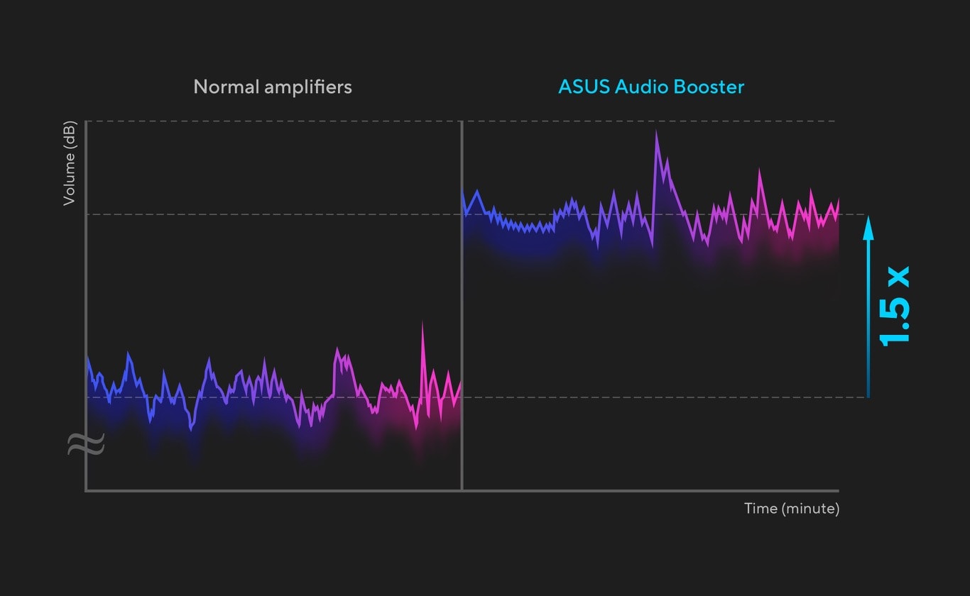 ASUS audio booster uses unique audio algorithms to boost audio volume up to 1.5x and take your audio experience to the next level.