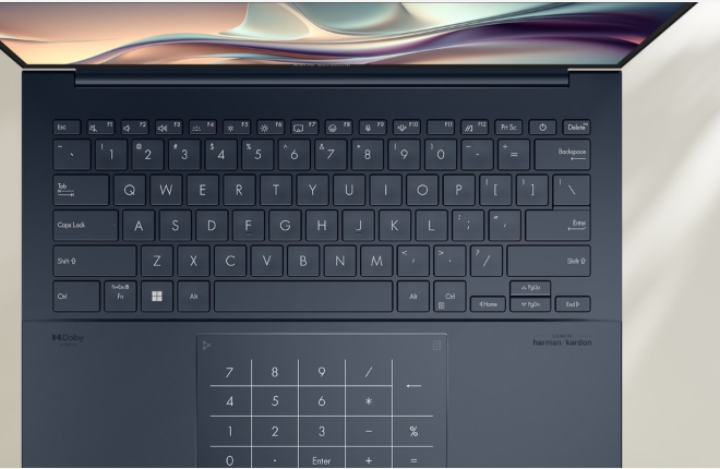 Our revolutionary Quiet Keyboard technology elegantly eliminates intrusive noises, benefiting both your personal space and those in your vicinity. And a touch on the emoji hotkey will infuse your conversations with vibrant expression. For easy number-crunching, the touchpad includes the ASUS NumberPad[10],[11] 2.0 virtual numeric keypad.