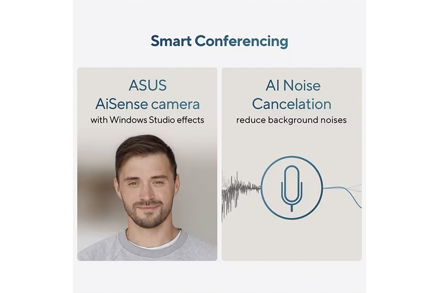 You’ll always look and sound your best with Asus innovative AI-enhanced camera and audio systems.