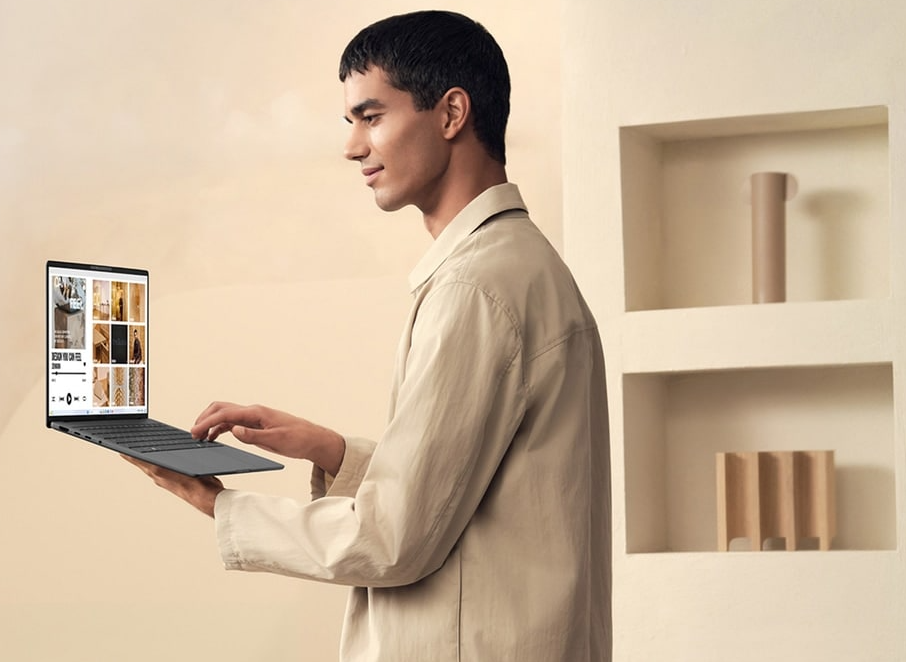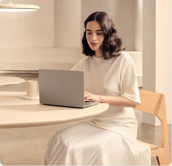 The all-new minimalist design, featuring tone-on-tone colors and nature-inspired materials, exudes elegance. The laptop lid, keyboard frame, and base are crafted from Ceraluminum, ASUS amazing anti-wear, anti-scratch and smudge-free material[2].