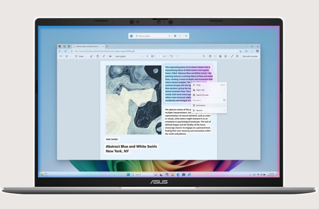 Use everyday language to find files, settings, or apps in an instant. Just say what you need, and Windows will take care of the rest.